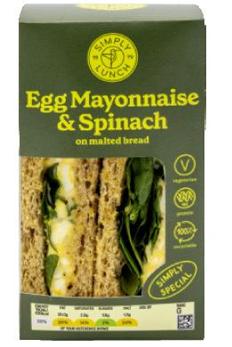 tomato & Piquillo pepper mayonnaise with leafy spinach on malted bread.