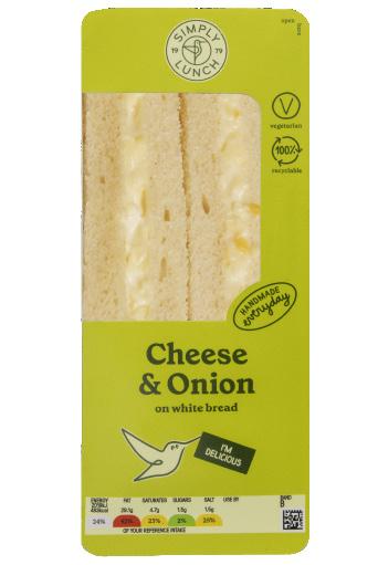 Red & white mature Cheddar cheese, red onion & mayonnaise on white bread.