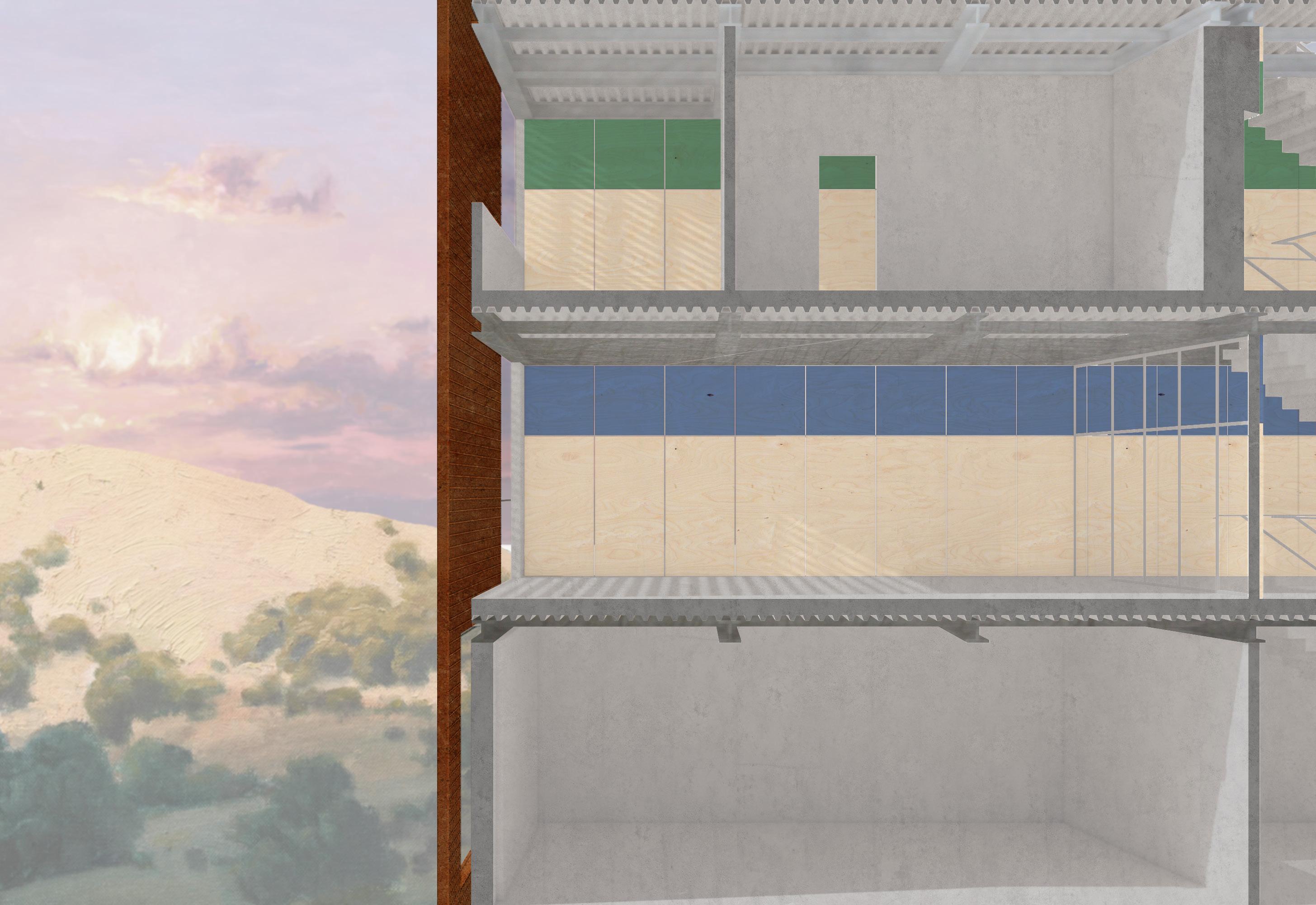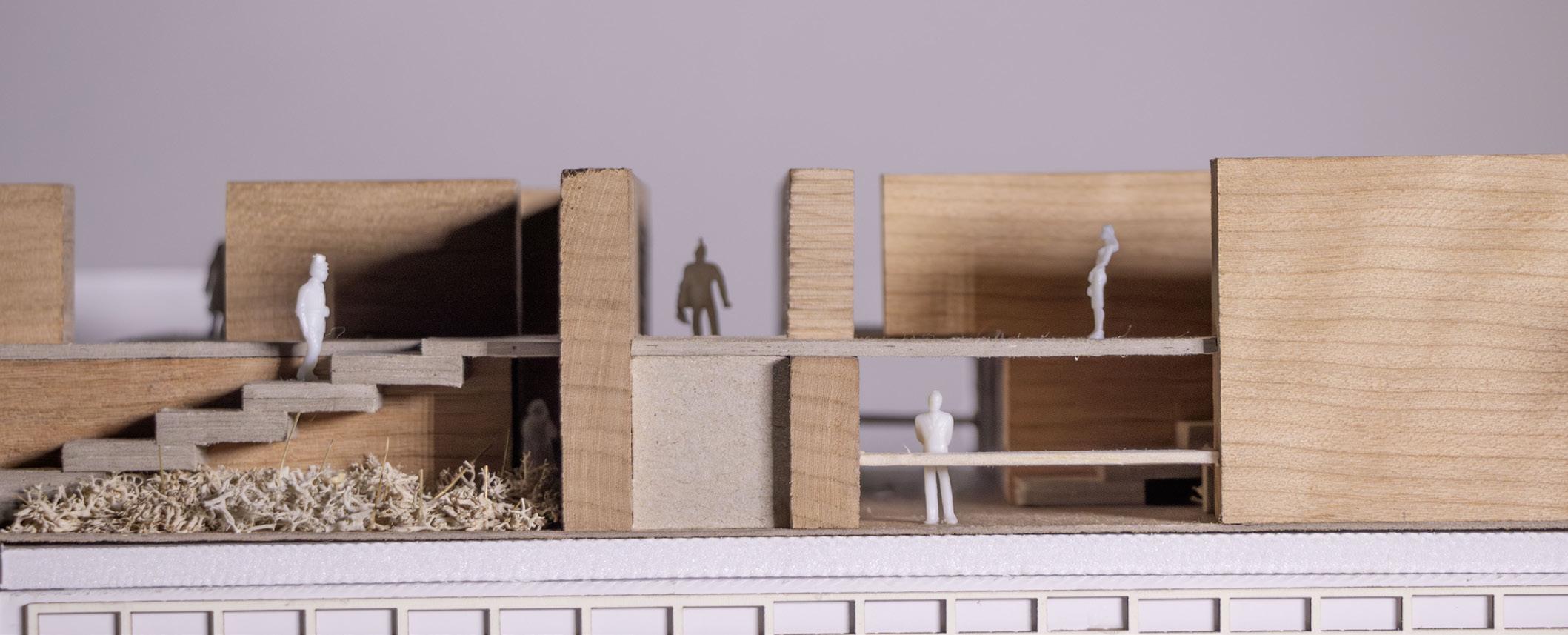 The goal of this project was to create a space that is a catalyst for creative output with a welcoming and approachable atmosphere. This was achieved by placing the main stair in the middle of the building, surrounding the central circulation with empty spaces to showcase art, process work, and places to chat, then finally, attaching the programmatic studios on the poles of the site. This creates an easy to navigate spatial sequence that highlights the creative energy of the occupants.