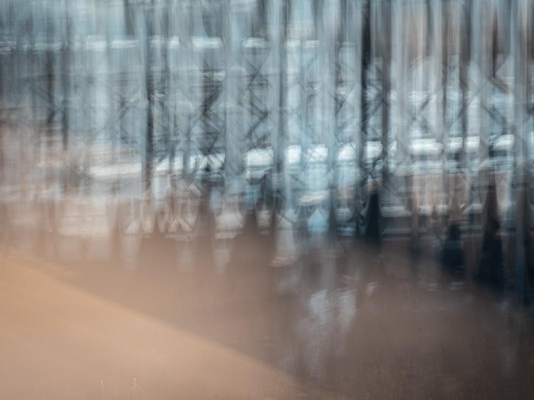 The multitude of both curved and angular lines of the built environment along with the lines and curves of the solitary human form have been blended together well and show good use of the icm technique. This image tells a story with the lone figure creating a striking contrast to the vast architectural space filling the frame.