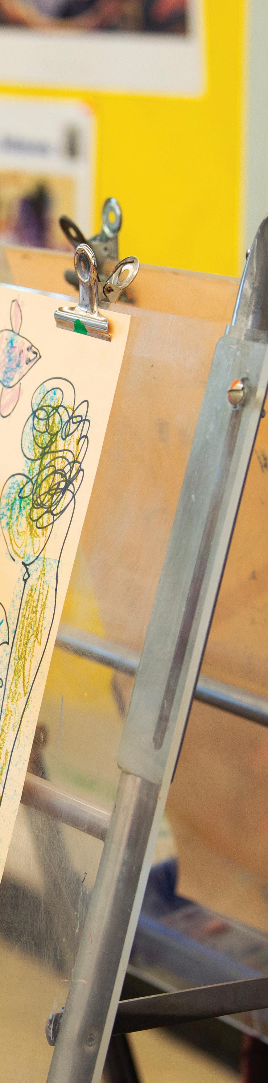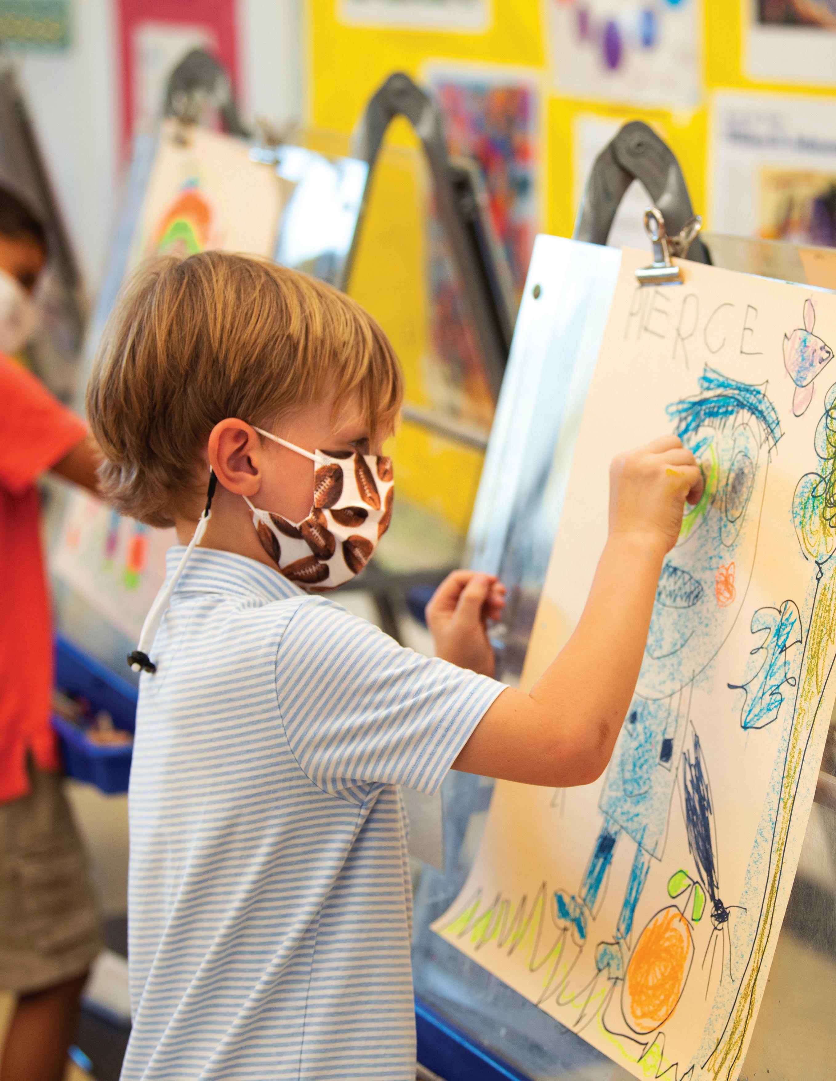 Inspired by fall, kindergarten students in Annie Giarla-Carr’s art class used sharpies and oil pastels to create large scarecrow drawings in the art studio.