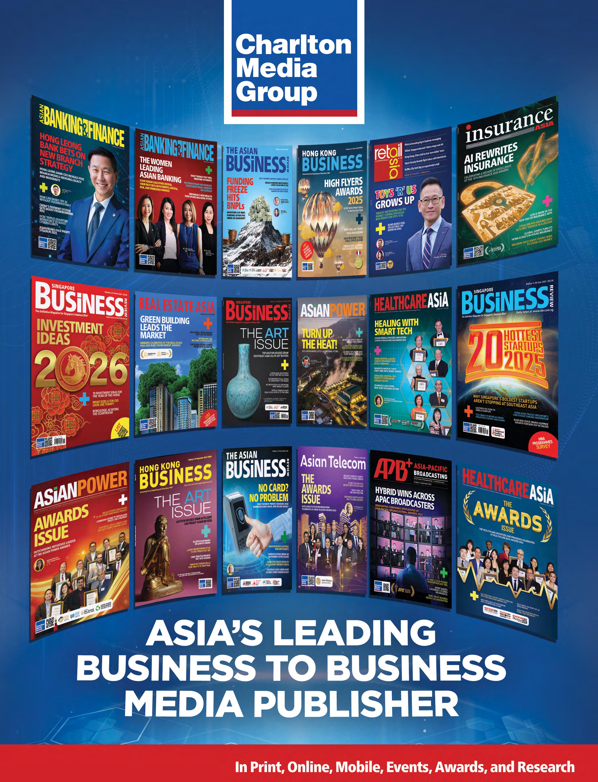 Subscriptions: Please email subscriptions@charltonmedia.com. Hong Kong Business is published by Charlton Media Group. All editorial is copyright and may not be reproduced without consent. Contributions are invited but copies of all work should be kept as Hong Kong Business can accept no responsibility for loss. We will however take the gains. Sold on newsstands in Hong Kong, Macau, Singapore, London, and New York.
