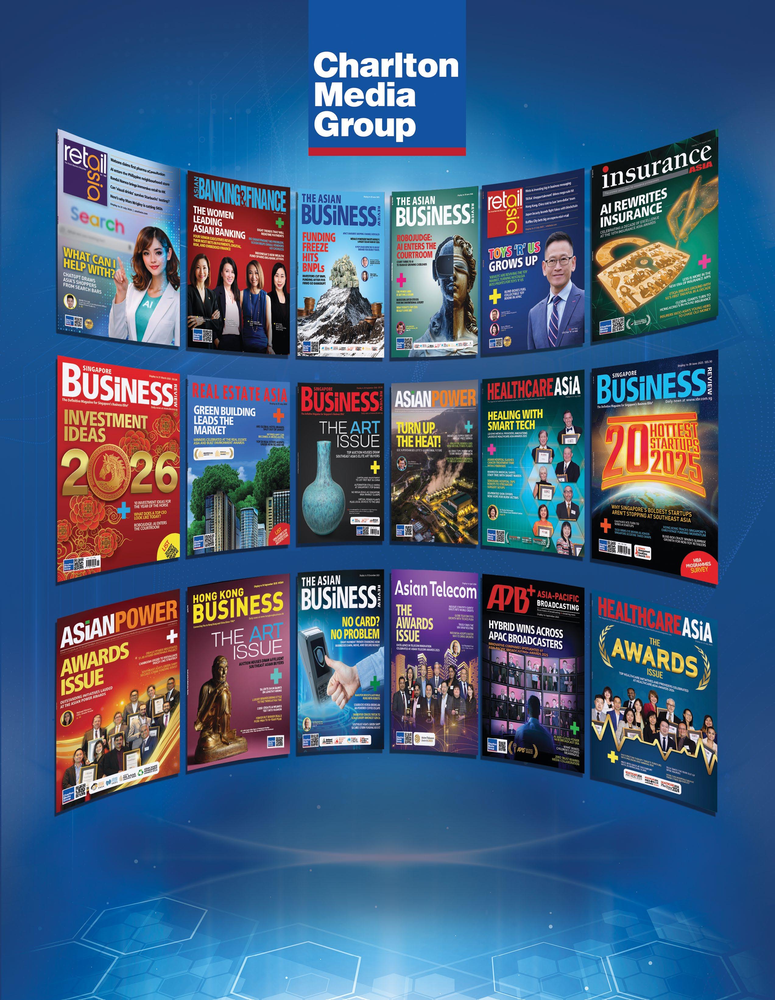 Singapore Business Review is published by Charlton Media Group. All editorial materials are covered by copyright and may not be reproduced without consent. Contributions are invited but copies of all work should be kept as Singapore Business Review can accept no responsibility for loss. We will, however, take the gains.