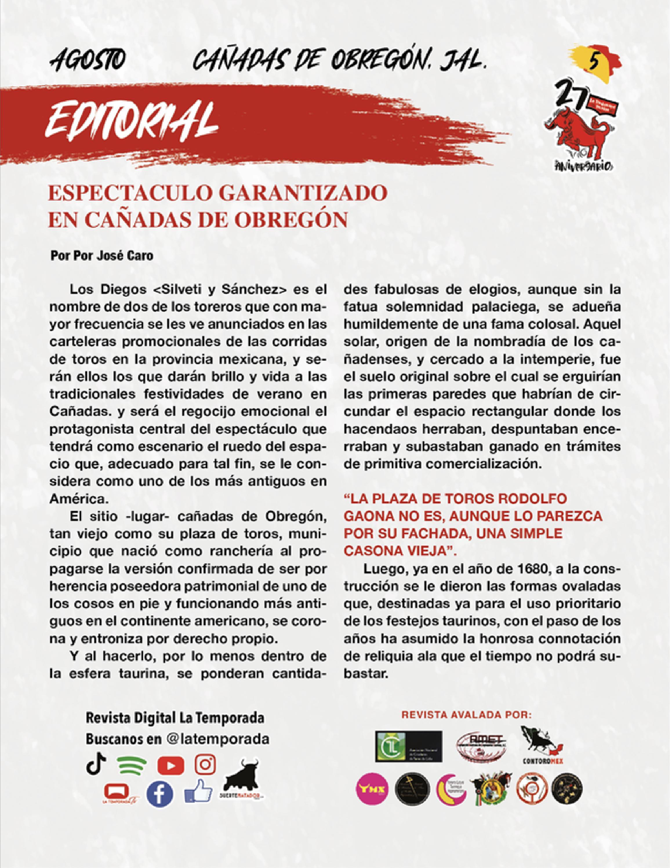 LA TEMPORADA CAÑADAS DE OBREGÓN 2 DE AGOSTO 2025 by REVISTA LA TEMPORADA TAURINA - Issuu