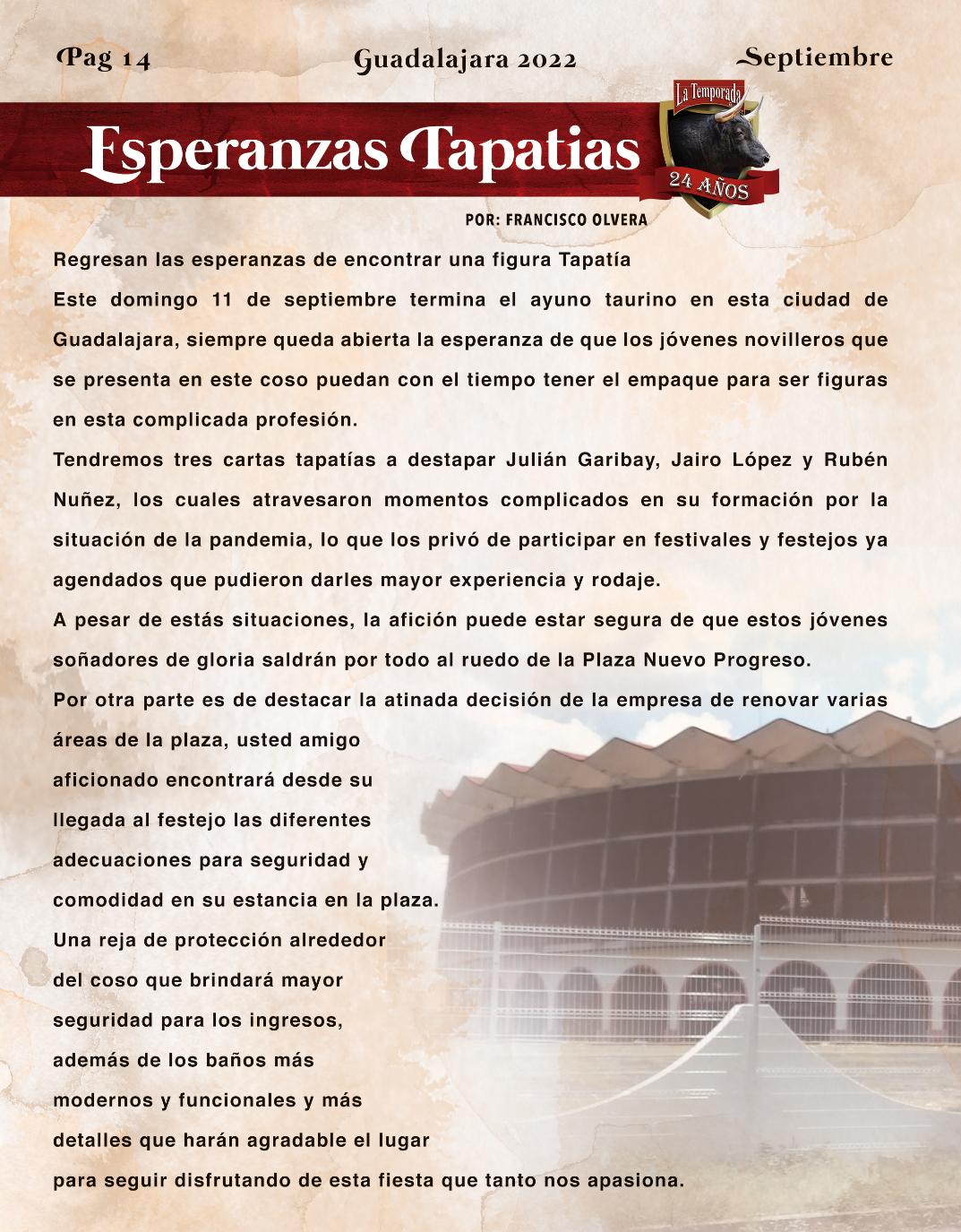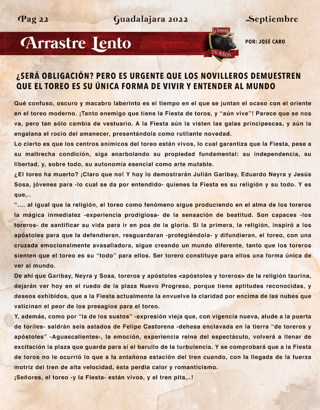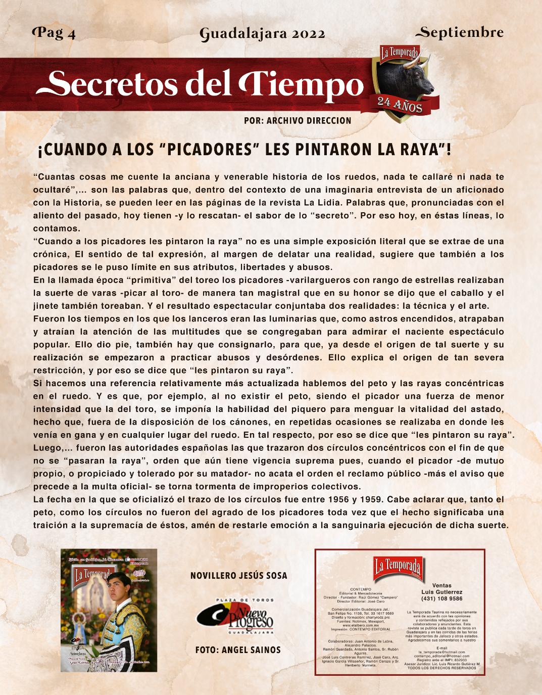 REVISTA LA TEMPORADA TAURINA NOVILLADA 11 DE SEPT 2022