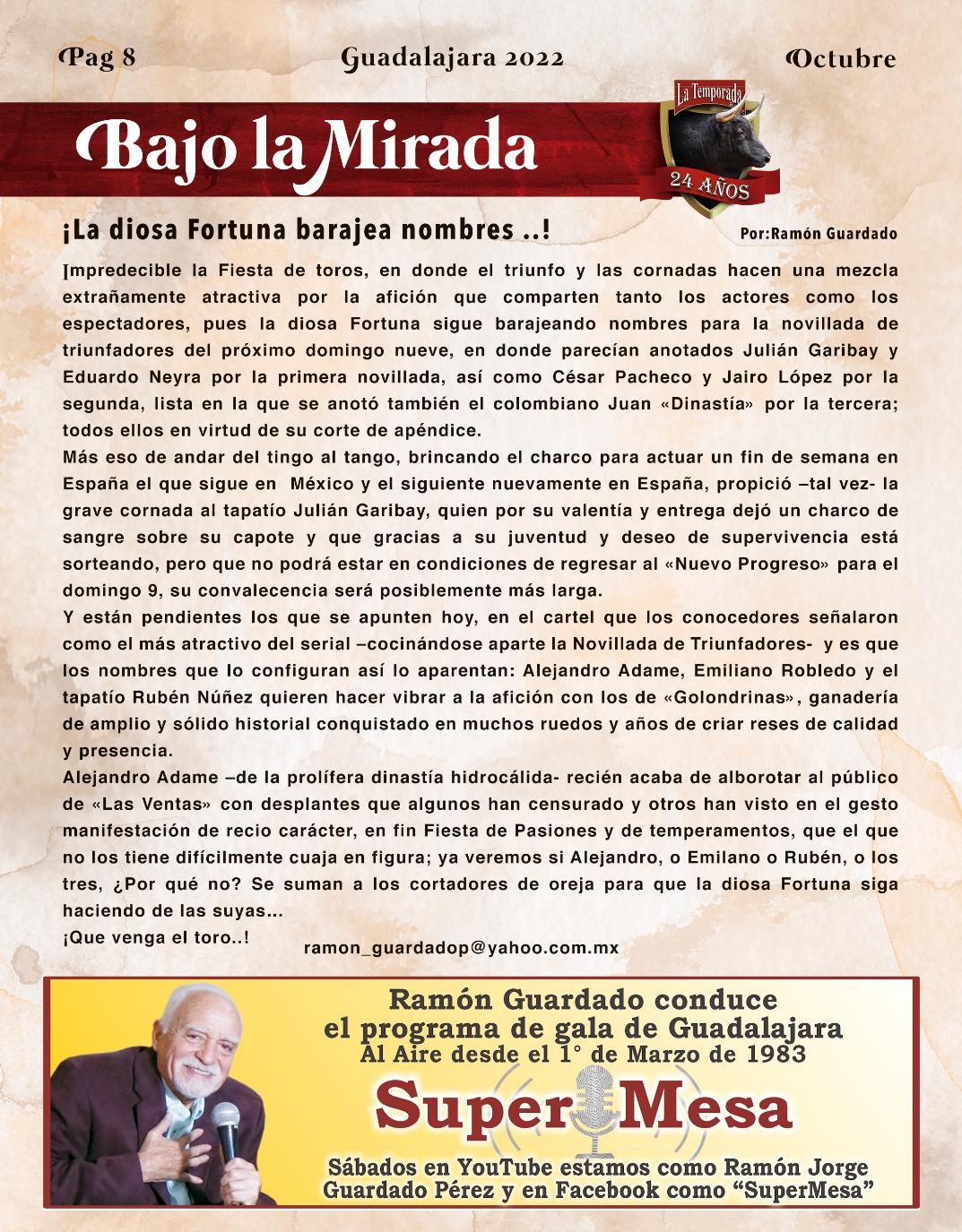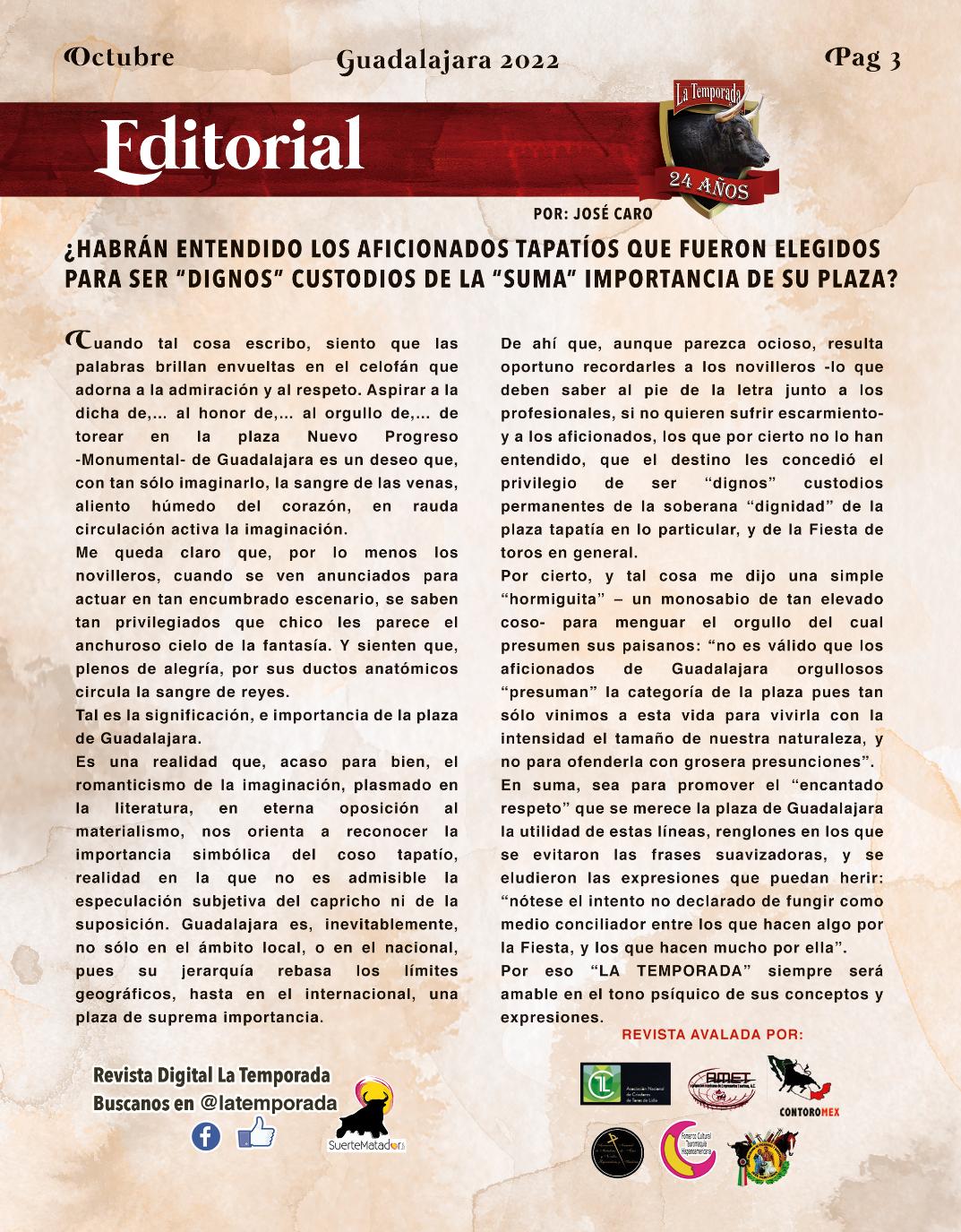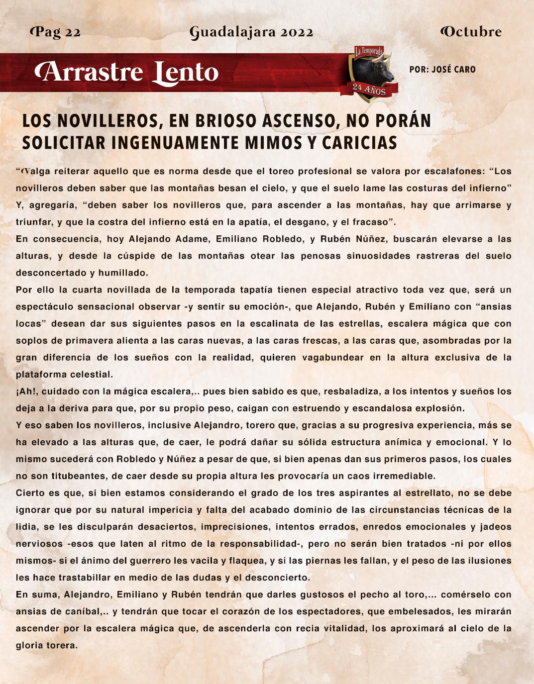 REVISTA LA TEMPORADA NOVILLADAS 4 GDL 2 OCT 2022