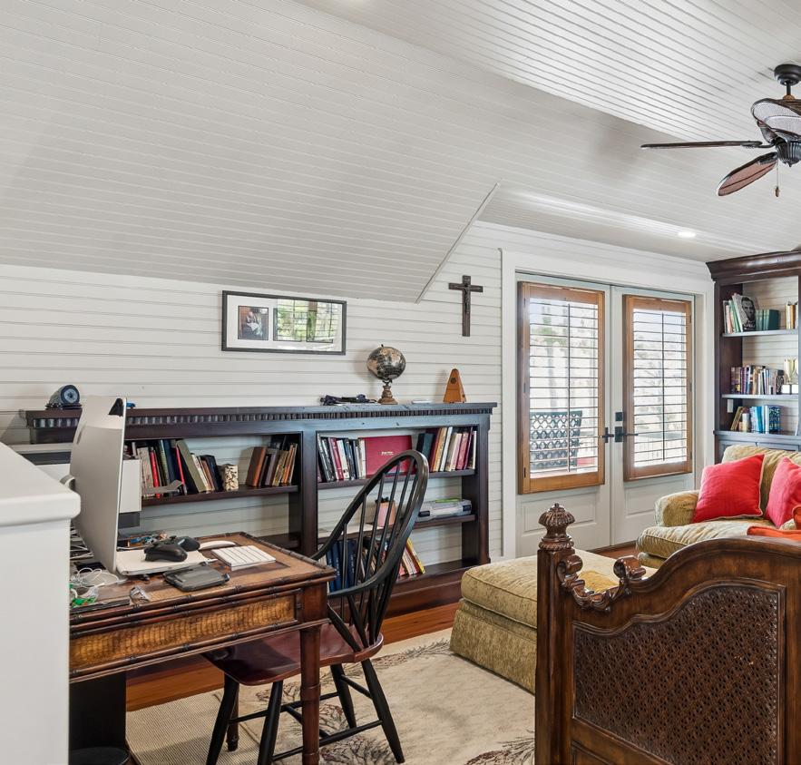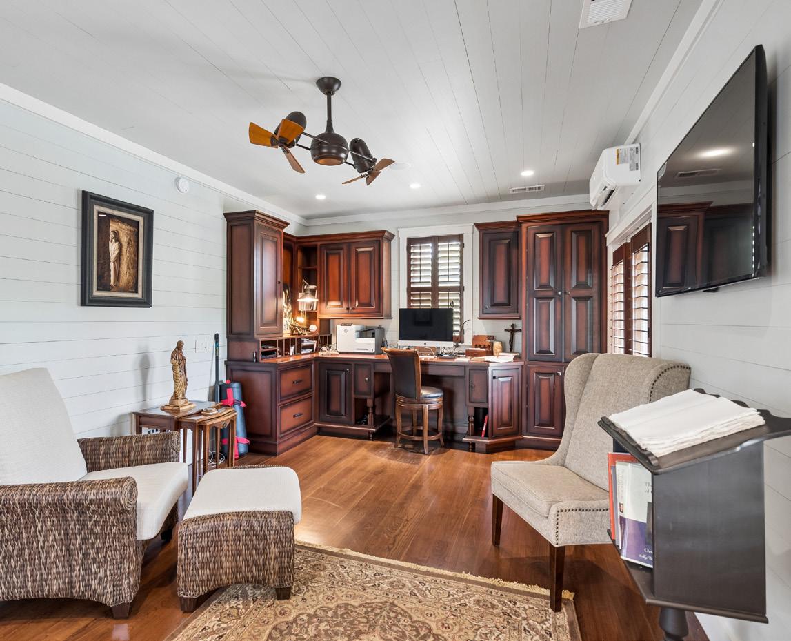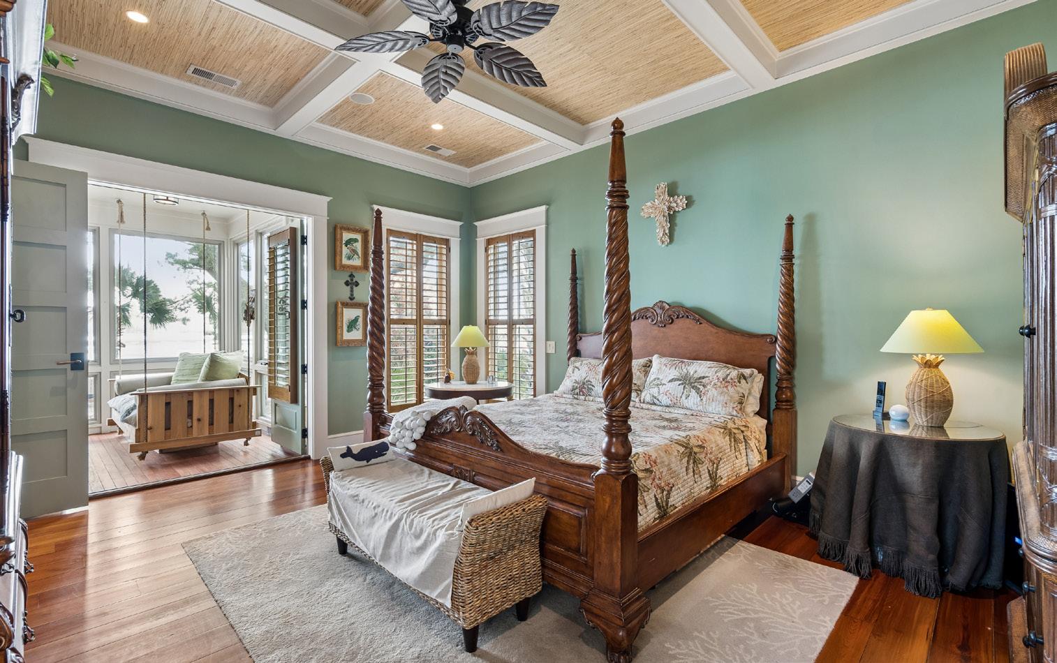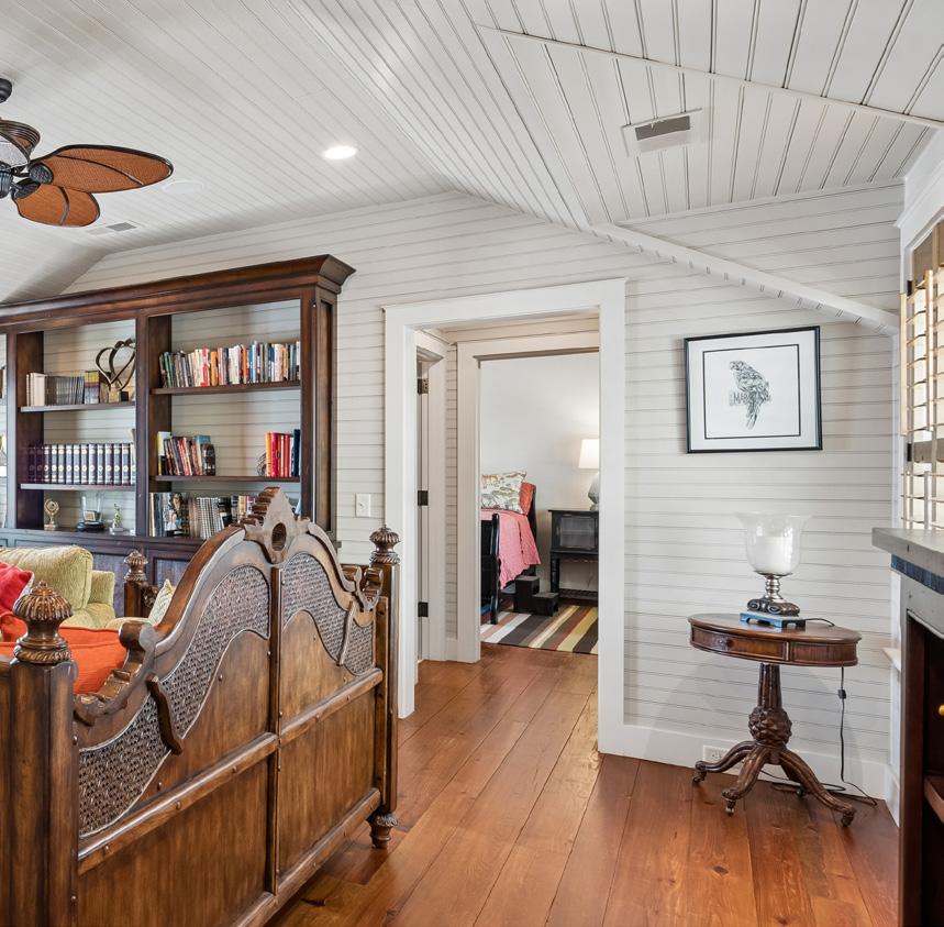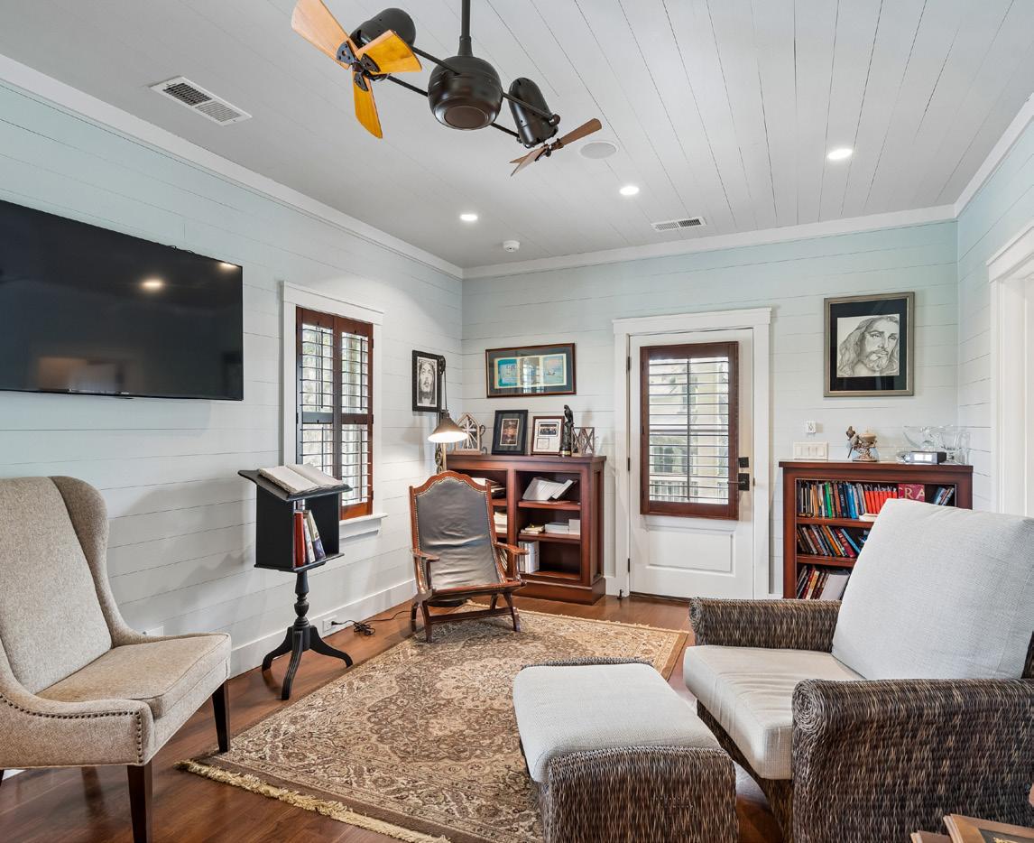 spa-inspired bath with soaking tub and walk-in shower, and its own enclosed porch with swing. Upstairs, a library with balconyideal as a study or reading room-anchors two ensuite bedrooms, one with a window seat and the other with its own balcony, along with conditioned storage. It’s no surprise this setting has served as creative inspiration-the home, and its sweeping river views influenced the backdrop of the novel Acre of Fools, now in development for a television series. Spend a quiet evening here, and you’ll understand why.