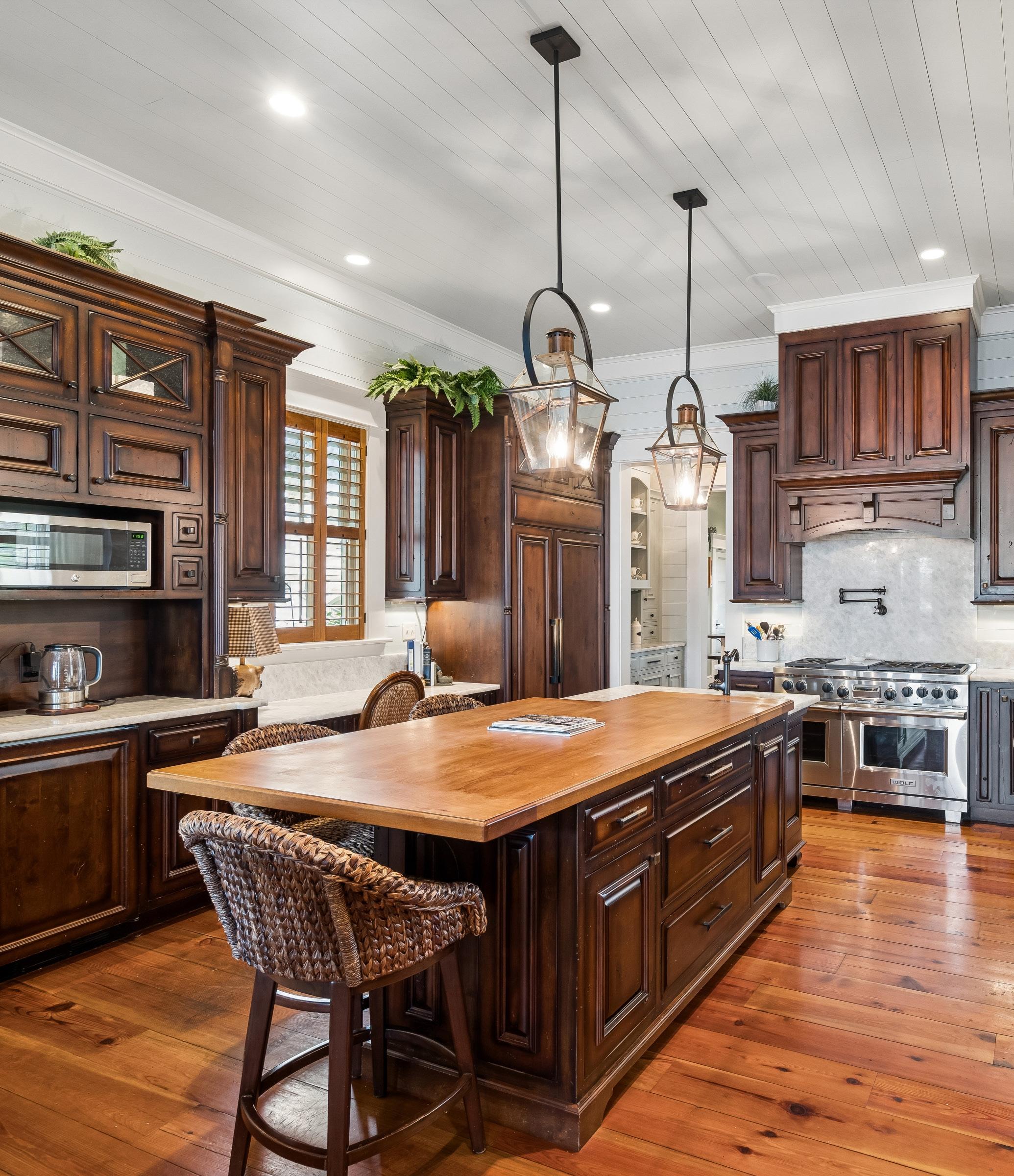 Next, move into the chef’s kitchen-appointed with Sub-Zero, Wolf, and Bosch appliances, a large island, walk-in pantry, and coffee station. Just beyond, a cozy keeping room with fireplace and screened porch with grilling area sit to one side, while a spacious laundry and mudroom is thoughtfully tucked to the other. The main-level primary suite is a private retreat with dual closets, a