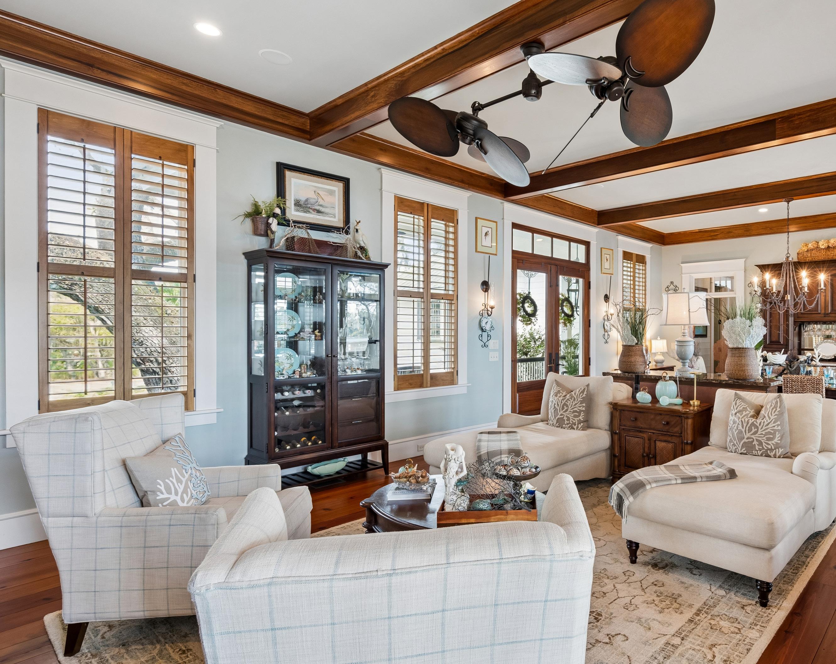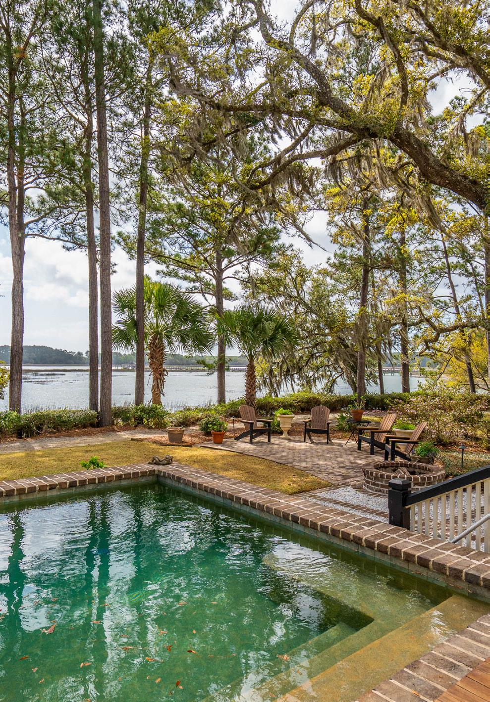 Beyond the main residence, a detached guest cottage offers remarkable flexibility with built-in bunks, kitchenette, full bath, and a separate office with half bath and custom built-ins. Outdoor living is equally compelling with a plunge pool and spa, firepit, Ipe decking, outdoor kitchen, and outdoor shower-all set against a backdrop of marsh and river views. Additional features include a 2-car garage with golf cart bay, multiple storage sheds, wholehouse generator, encapsulated crawlspace, advanced smart home technology, and a metal roof. Located within Oldfield, this home offers a setting as memorable as the home itself.