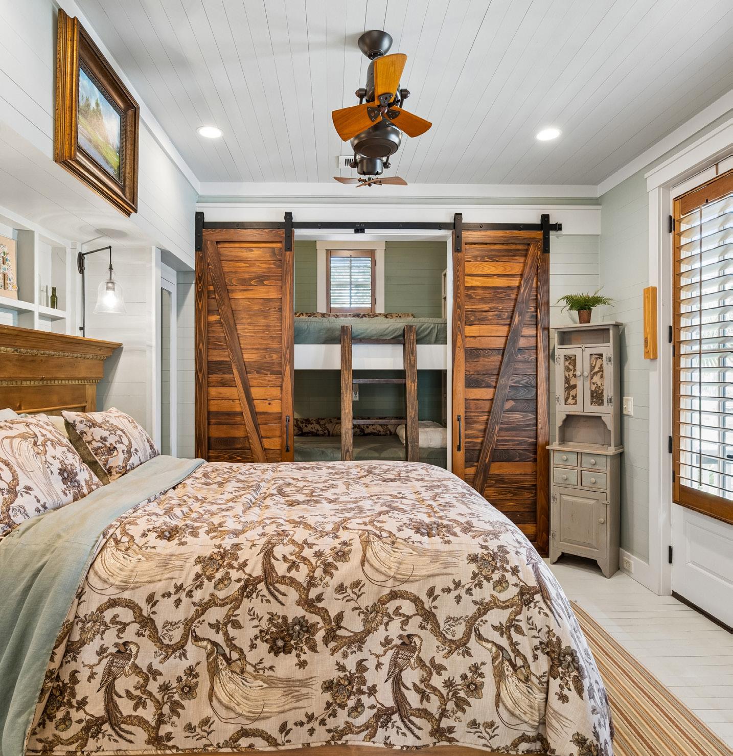 • Reclaimed hardwood floors sourced from the Florida–Georgia line, bringing warmth and historic character