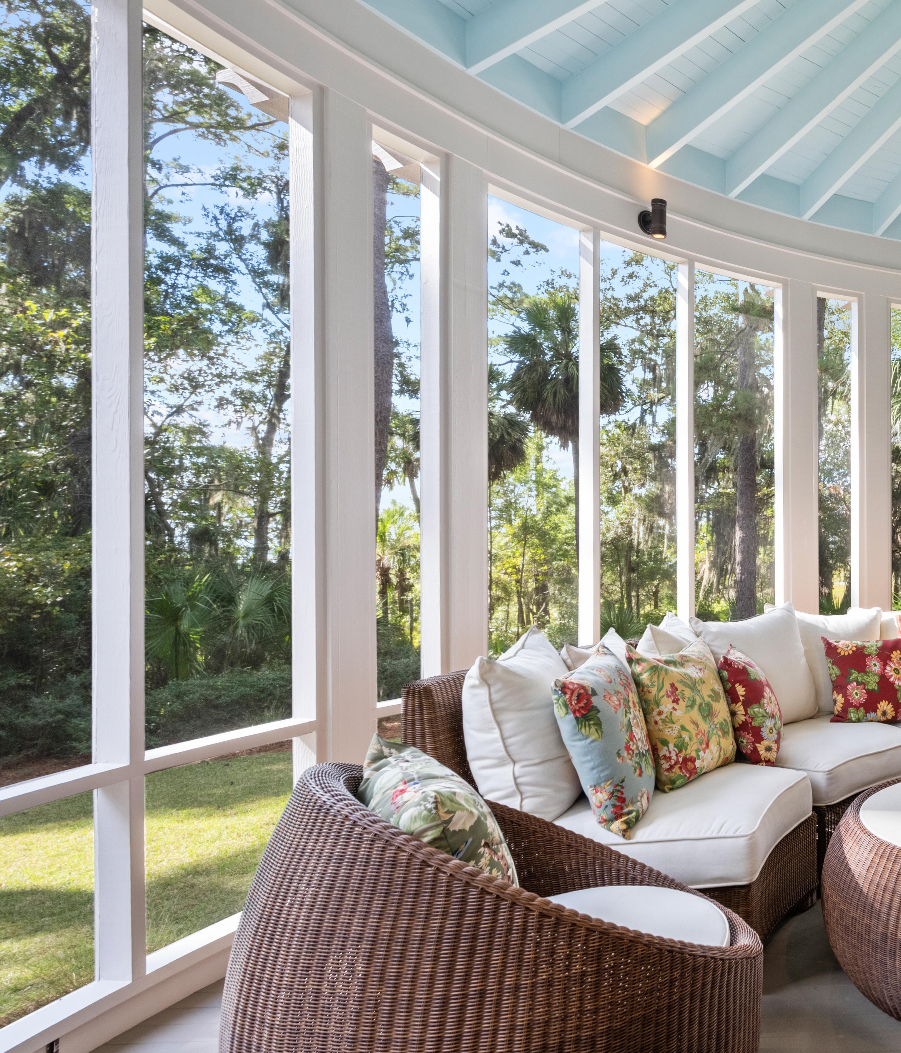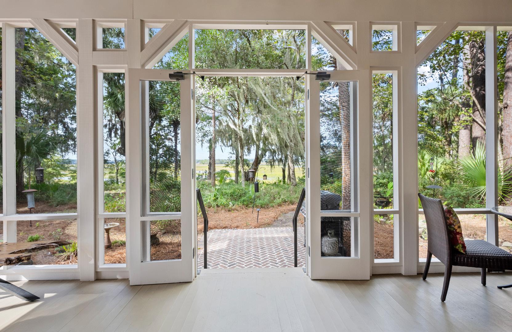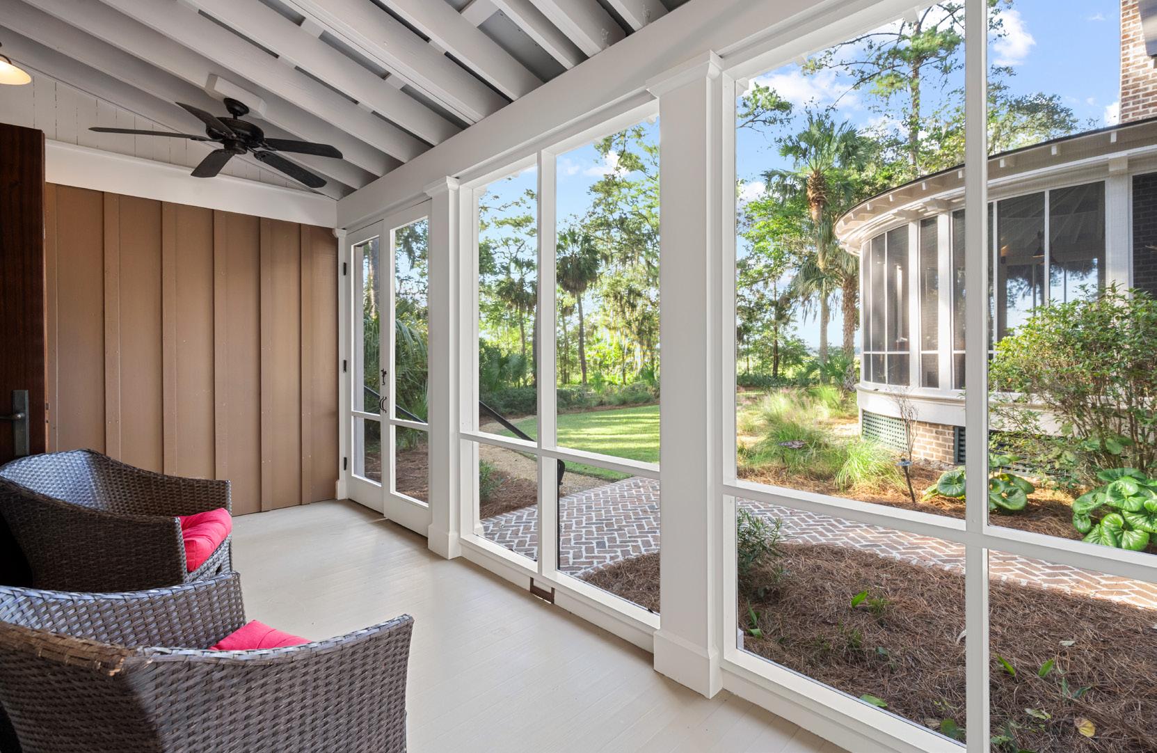 French doors open to a cozy screened porch overlooking the river, offering the perfect spot for morning coffee or evening sunsets. This space sets the tone for gracious Lowcountry hospitality, combining comfort, functionality, and effortless style.