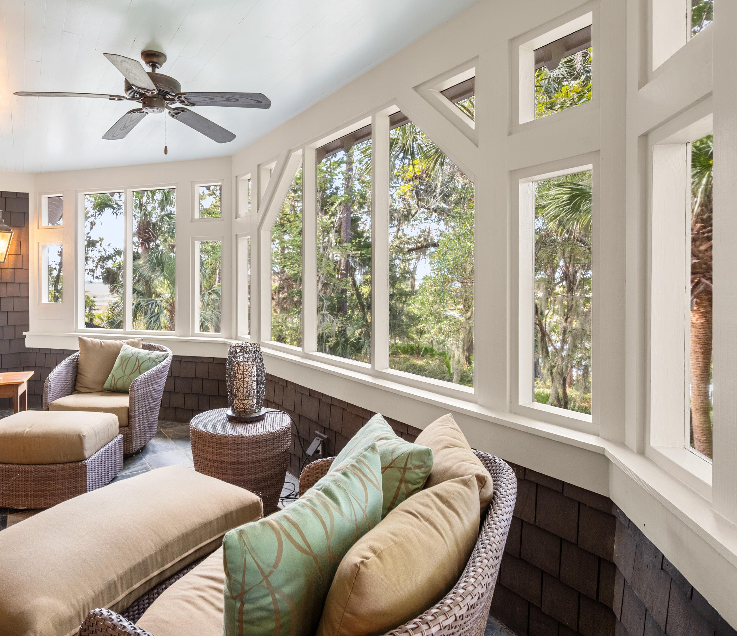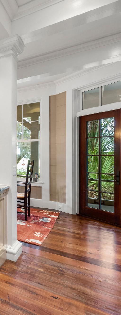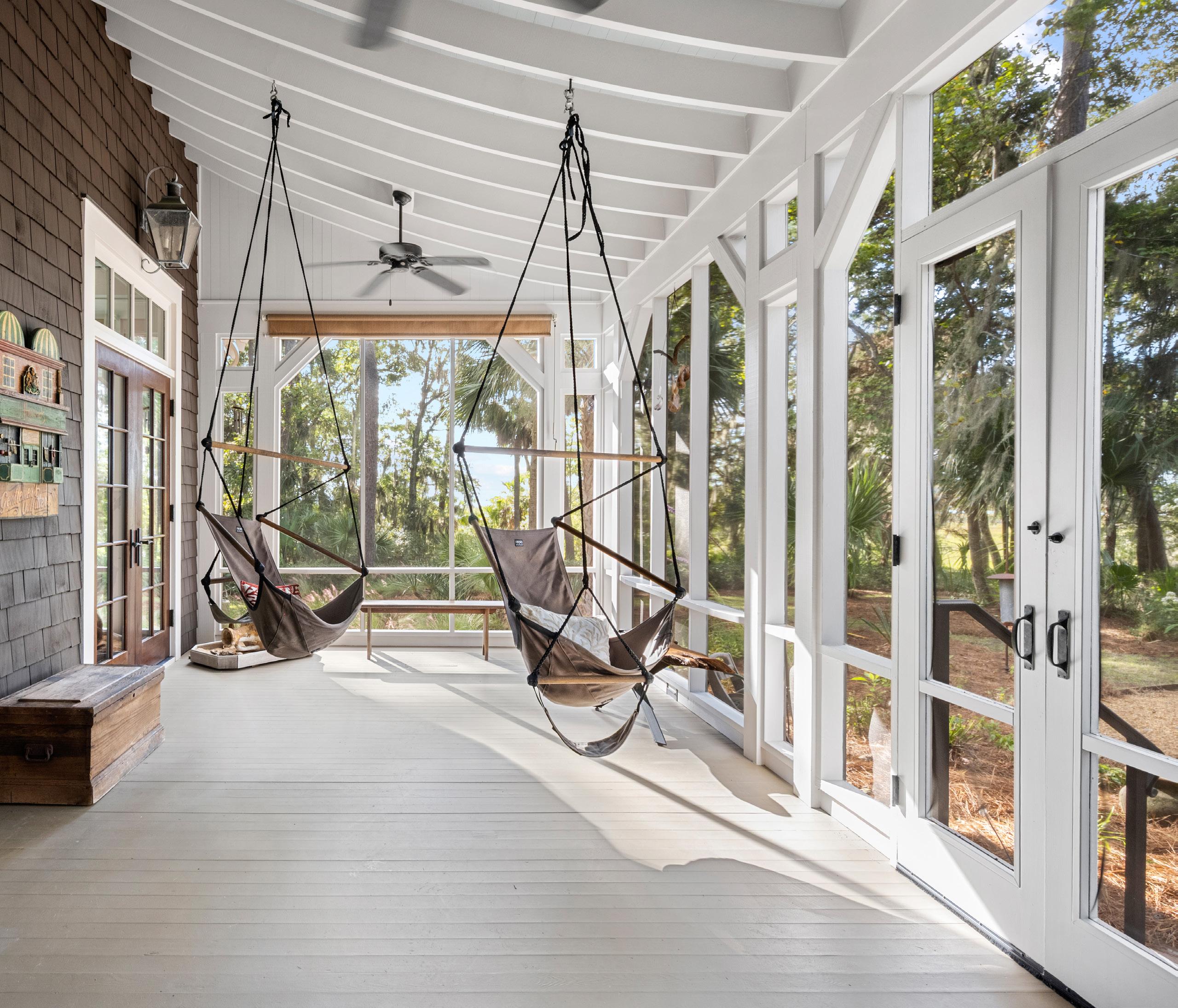 French doors open to a cozy screened porch overlooking the river, offering the perfect spot for morning coffee or evening sunsets. This space sets the tone for gracious Lowcountry hospitality, combining comfort, functionality, and effortless style.
