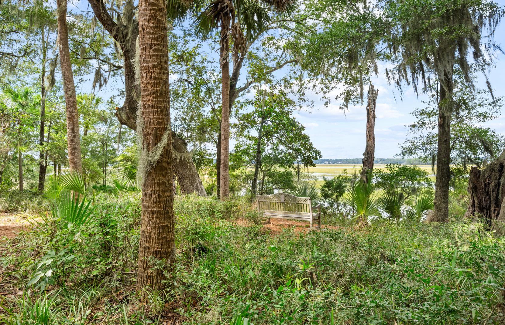 Nestled along the serene tidal waters, this private dock offers an unparalleled front-row seat to the beauty of the Lowcountry. A winding path meanders through native palms and moss-draped oaks, leading to the water’s edge where expansive marsh vistas stretch to the horizon.