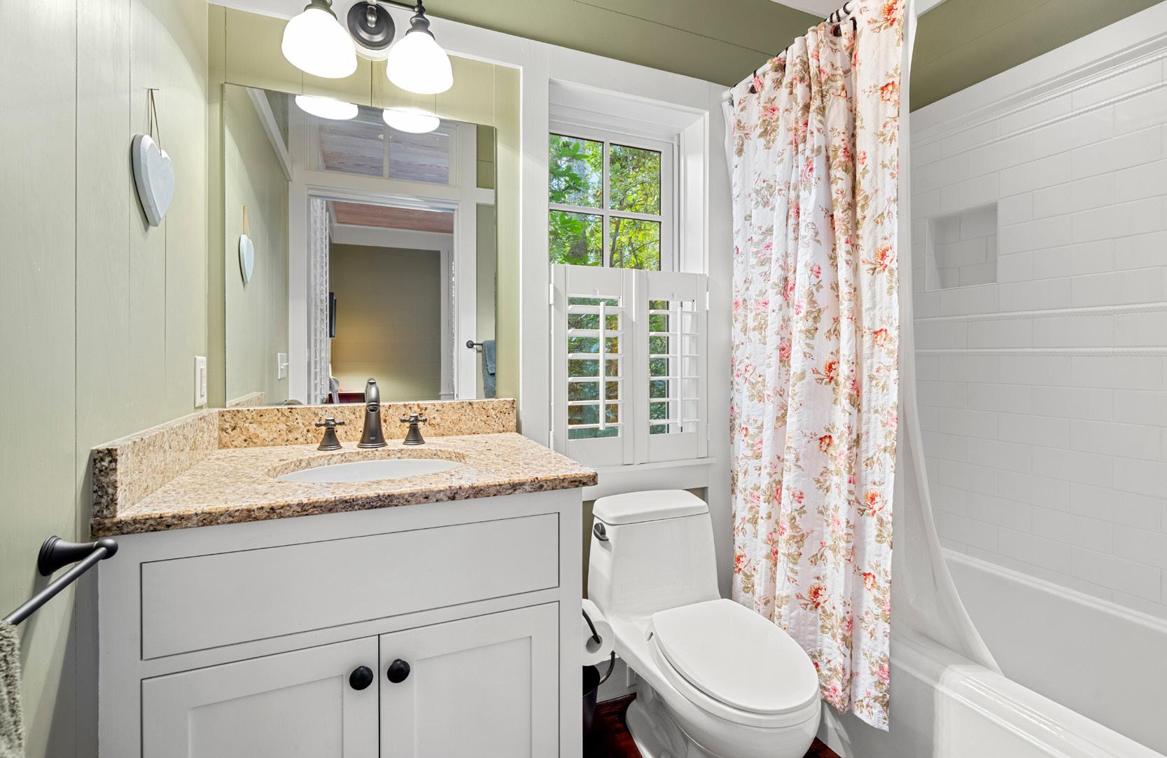 Thoughtful architectural details—built-in cabinetry, transom windows, and soft natural light—enhance the suite’s refined yet welcoming ambiance. The ensuite bath continues the home’s timeless aesthetic, featuring granite countertops and a beautifully tiled walk-in shower that blend classic craftsmanship with modern comfort. Ideal for guests or extended family, this suite feels like a private haven within the home—gracious, elegant, and effortlessly serene.