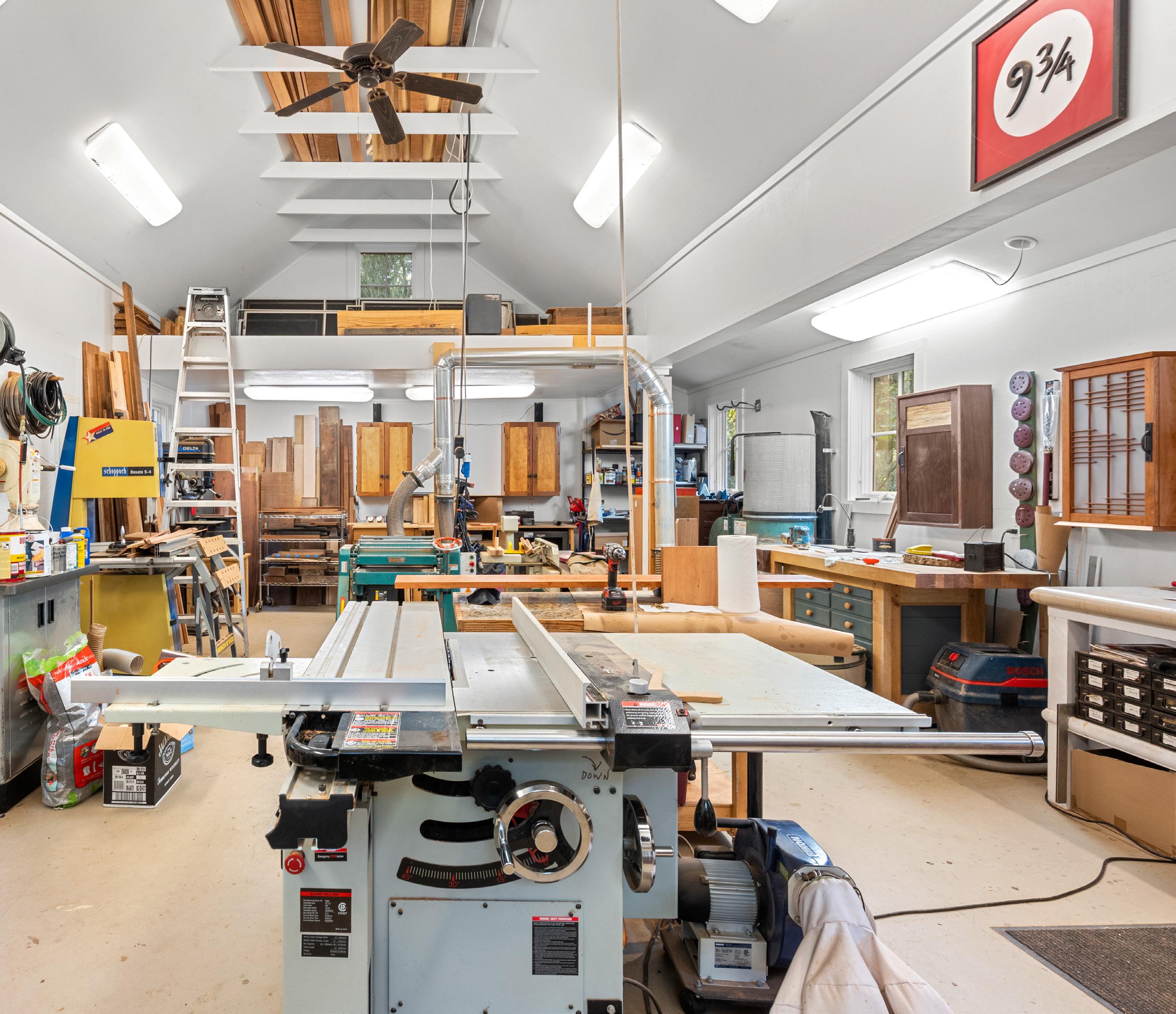 This professional woodworking studio is a craftsman’s sanctuary, designed for both precision and creativity. Soaring ceilings and abundant natural light create an inspiring environment, while a fully equipped workspace with professional-grade tools (available separately) allows every project to be executed with ease.