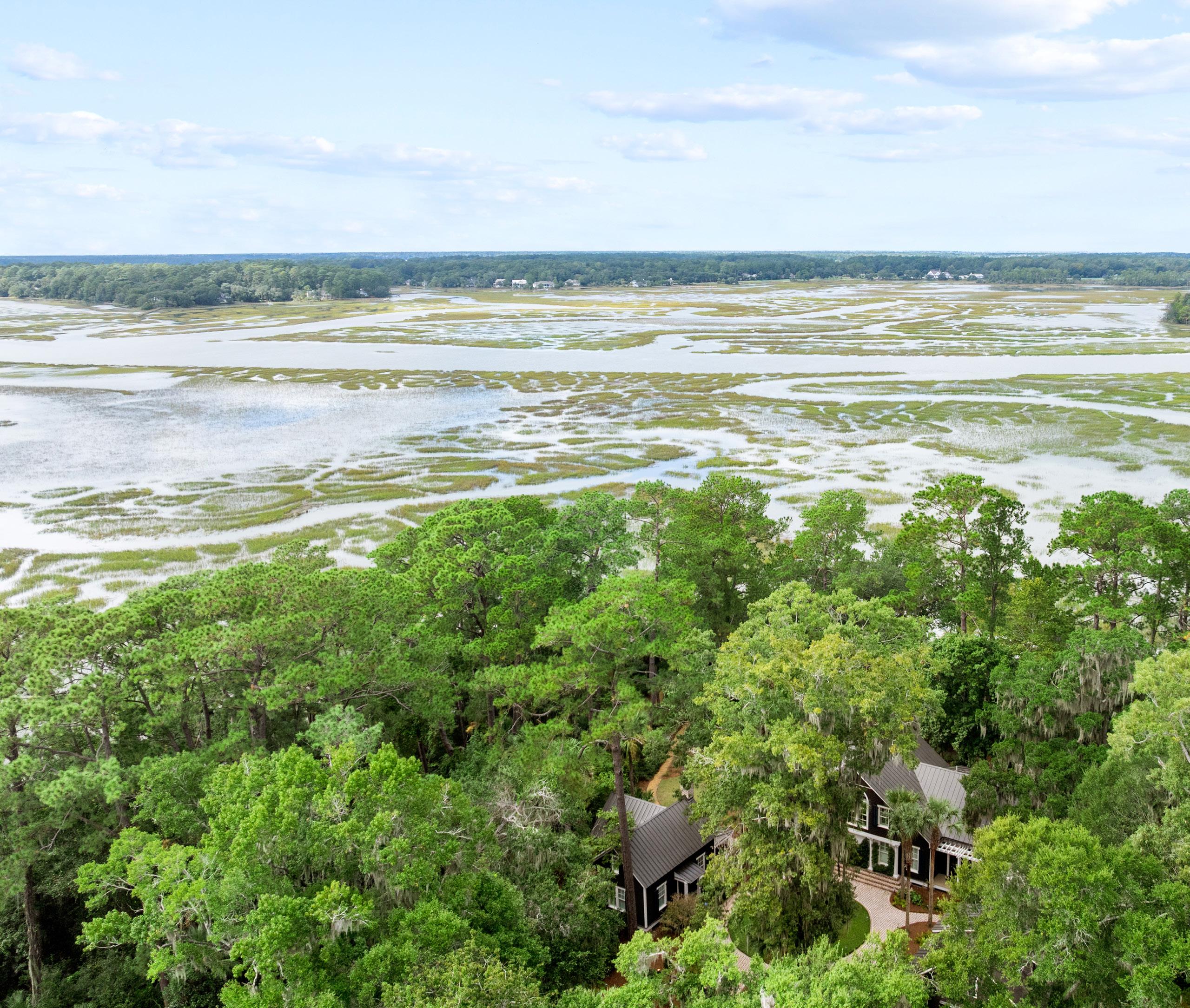Exquisite sunsets over Callawassie Creek and the Colleton River provide a stunning backdrop for this rare Nantucket-style family compound on coveted Spring Island. Set on 3.5+ acres, this 5,223 sq. ft., 5BR/5.5BA waterfront estate boasts a private tidal dock with direct access to Callawassie Creek, the Colleton River, and the Atlantic Ocean. By boat, enjoy easy day trips to Hilton Head, Savannah, or Beaufort, or simply unwind at home fishing, crabbing, shrimping, or watching dolphins and Roseate Spoonbills from your serene waterfront retreat.