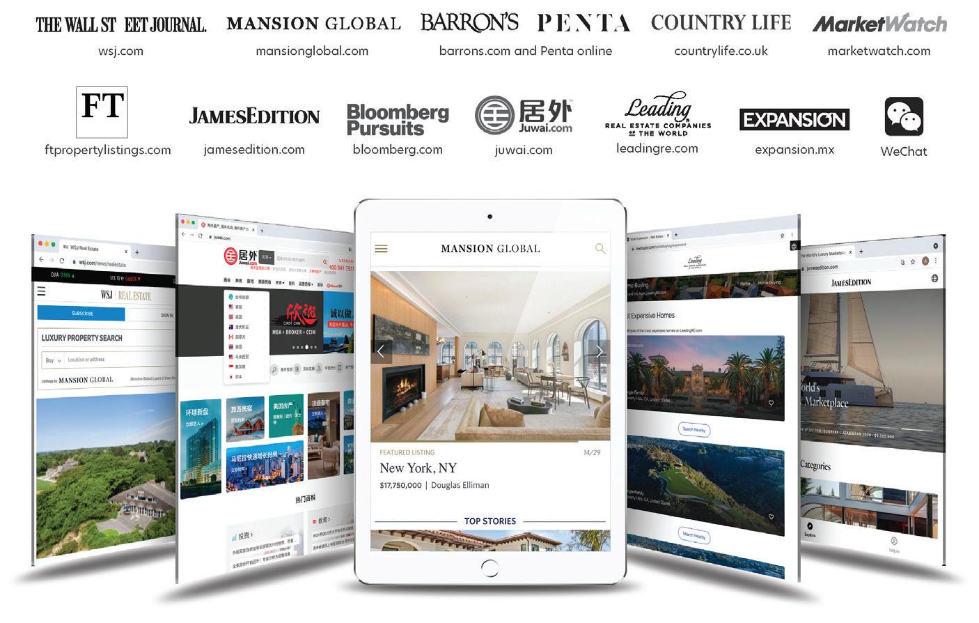 Charter One Realty’s $1M+ residential listings are posted on LuxuryPortfolio.com and displayed on key websites worldwide, including The Wall Street Journal, Mansion Global, MarketWatch, Barron’s, Penta online, Juwai, YouTube, WeChat, Country Life, JamesEdition, Expansion, and Bloomberg Property Listings.