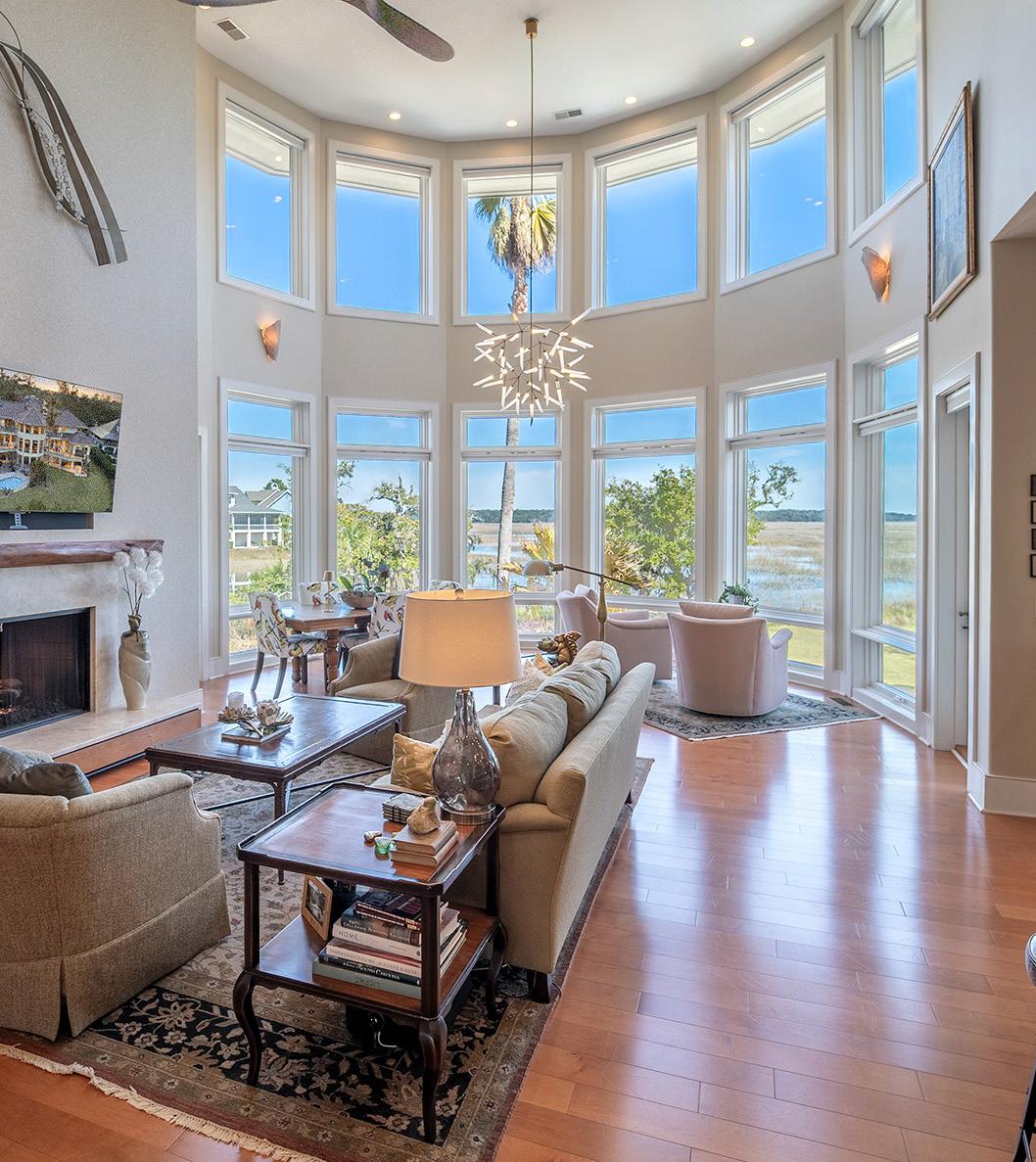 This premier marshfront estate in Belfair, custom built and designed by Kermit Huggins, is a masterclass in coastal elegance with a refined contemporary edge. Perfectly positioned on a private .74-acre homesite with pristine landscaping, the home makes a striking first impression with its dramatic walk-up entry. Inside, soaring ceilings, statement lighting, bespoke millwork, and wideplank wood flooring establish a sense of grandeur balanced by warmth. The great room is framed by an entire rear wall of glass, capturing sweeping marsh vistas and unforgettable Lowcountry sunrises. The main-level primary suite offers a private retreat, while thoughtfully designed living spaces include a dedicated office, media room, and a laundry room with integrated workspace. Abundant storage is seamlessly incorporated throughout, including concealed compartments hidden behind custom built-ins. An elevator provides convenient access to all levels.