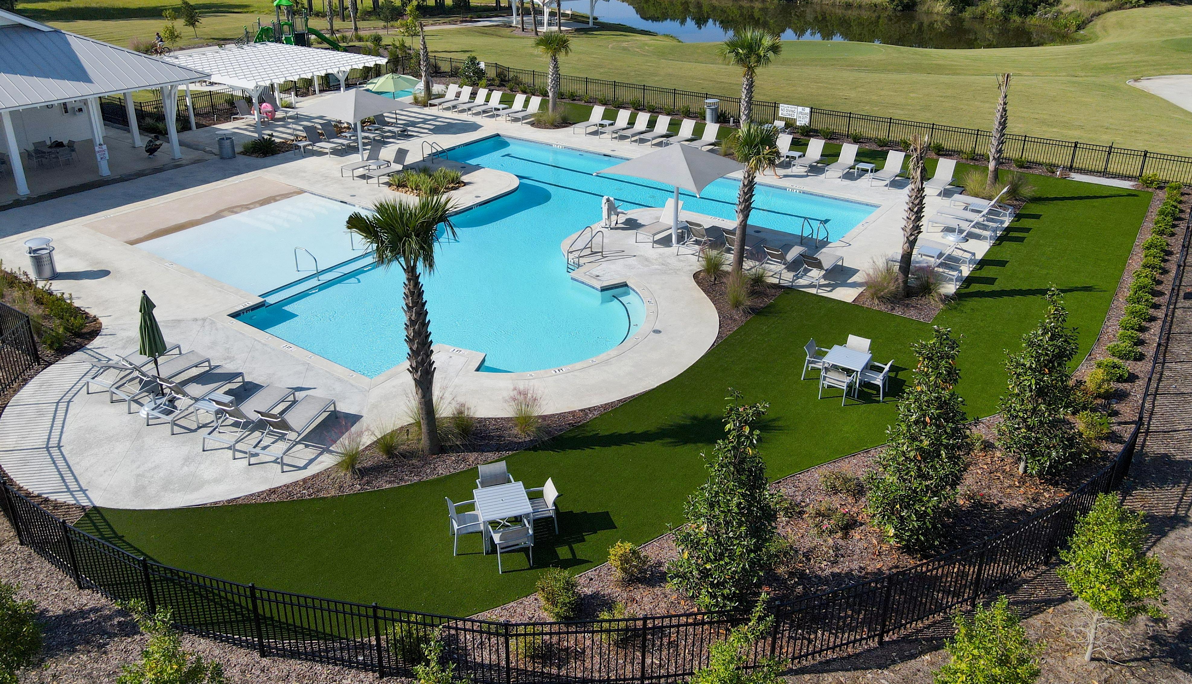 • A Clubhouse, providing full-service dining, an adult-only heated and cooled swimming pool overlooking the marsh, bocce and croquet courts.