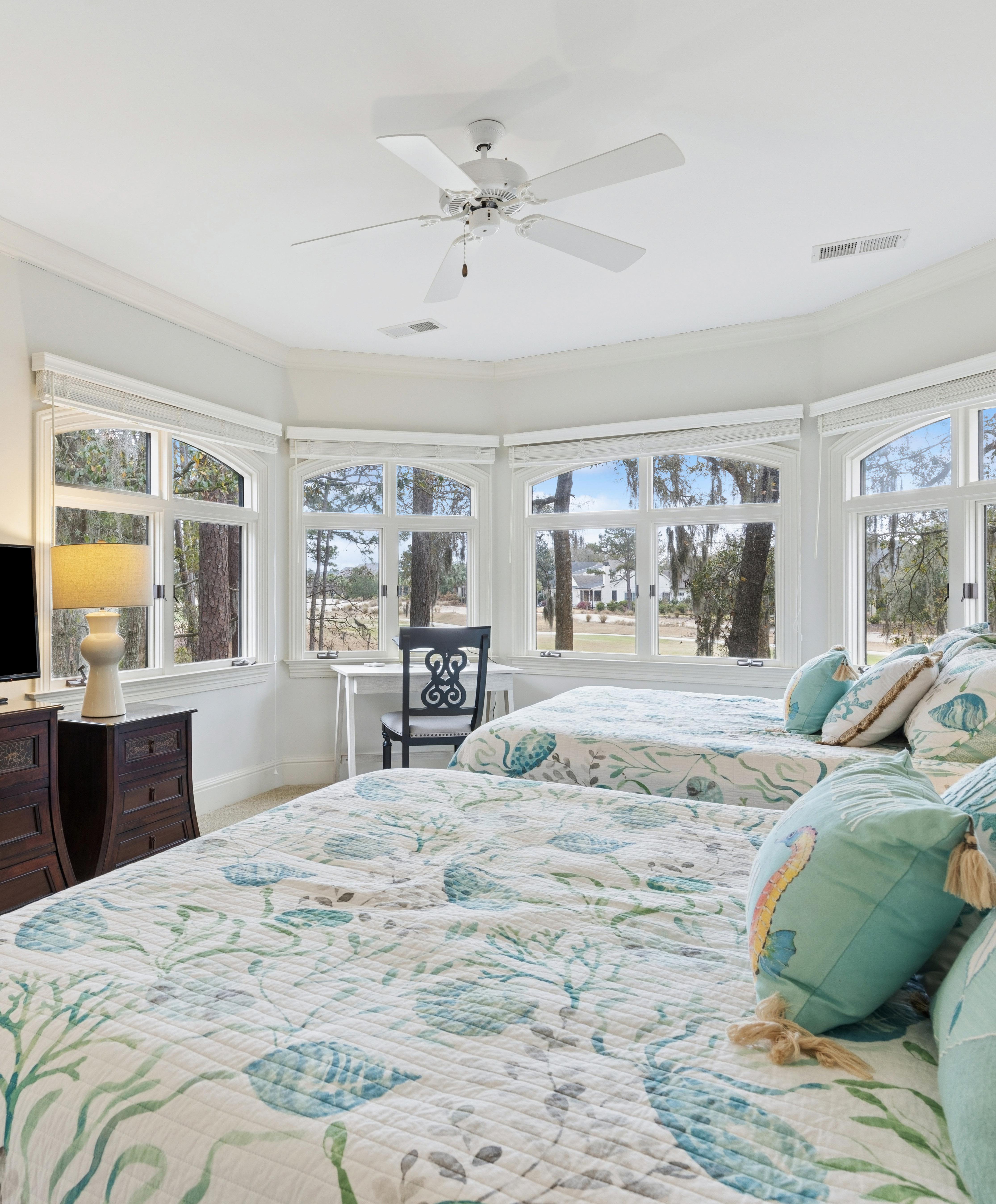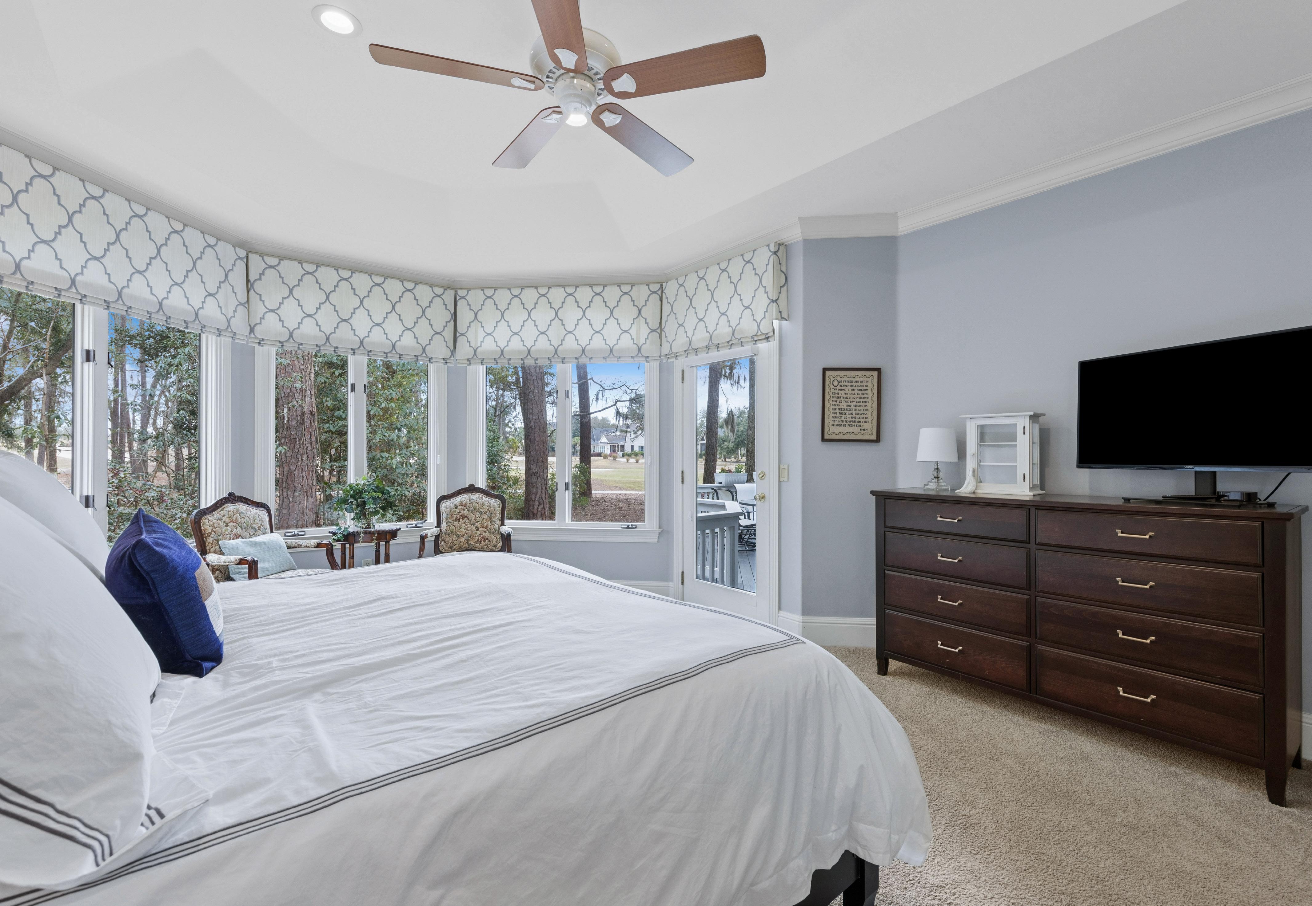 Perfectly positioned along the 15th tee of the Nicklaus Course at Colleton River, this beautifully updated Lowcountry residence offers refined golf course living with sweeping views and exceptional craftsmanship throughout. Encompassing 3,492 square feet, the home features 4 bedrooms, 4 full baths, and 1 half bath, thoughtfully designed for both elegant entertaining and comfortable everyday living. The reimagined gourmet kitchen, redesigned in 2023, showcases a sophisticated new layout complemented by top of the line appliances and elevated finishes. The luxurious primary suite serves as a private retreat with stunning golf course views, direct access to the back porch, and a fully renovated spa-inspired bath (2023) featuring heated floors, an expansive walk-in shower, and a freestanding soaking tub. Additional enhancements include a beautifully updated wood-burning fireplace (2023), a refinished and freshly painted back deck, new HVAC systems and thermostats installed in 2022, and a roof replaced in 2019. Ideally located just moments from the Nicklaus Clubhouse, community dock, and Colleton River’s renowned amenities, this exceptional residence offers a rare opportunity to experience a luxury golf course living in one of Bluffton’s most prestigious private communities.