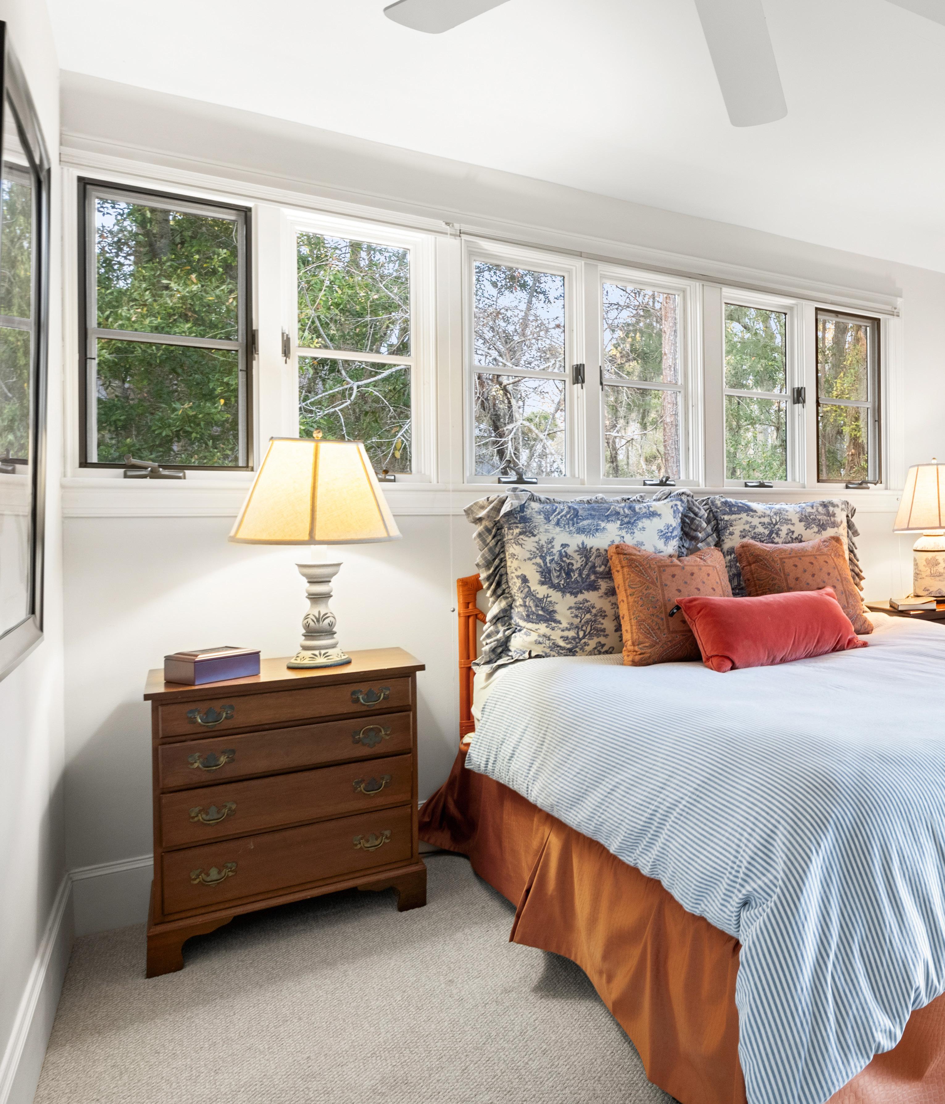 Additional guest bedrooms offer generous space, soft natural light, and thoughtful details throughout. Neutral palettes, classic furnishings, and charming accents create rooms that feel relaxed yet refined. Designed with versatility in mind, the layouts easily accommodate guests of all ages, from cozy bunk arrangements to spacious bedrooms with tranquil views. Each suite feels welcoming and well-appointed, making extended stays as effortless as they are memorable.