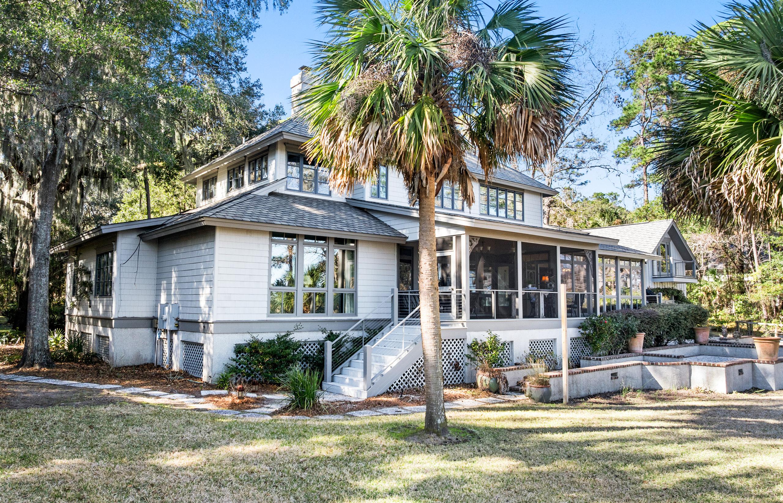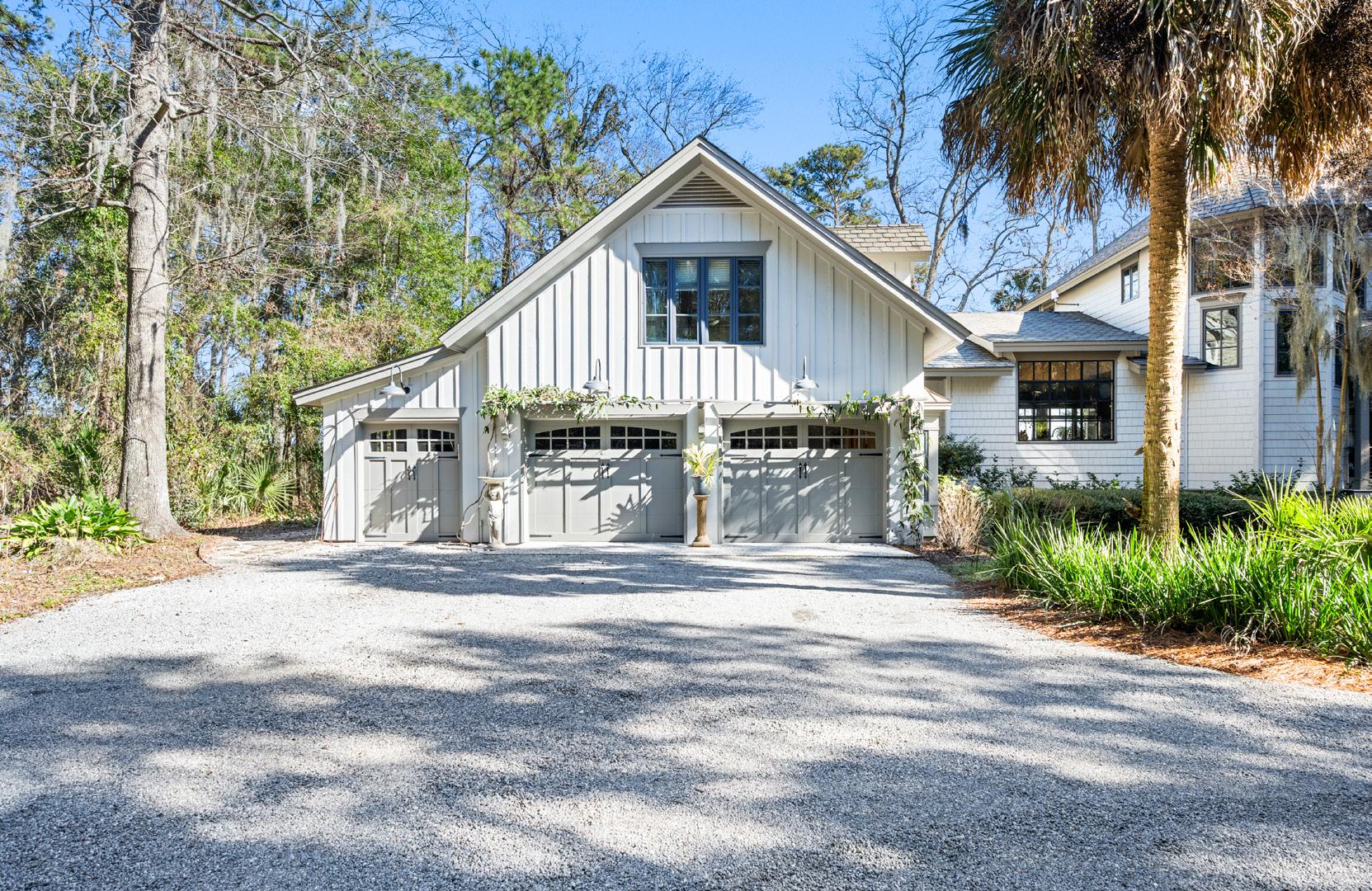 Wrapped in mature oaks and palms, the home’s exterior makes a striking first impression with classic Lowcountry architecture and understated elegance. A winding brick-edged walkway and thoughtfully designed landscaping create a graceful approach, setting the tone before you ever step inside. The detached garage and complementary structures blend seamlessly with the main residence, offering both function and architectural harmony. Timeless, inviting, and beautifully sited, the property feels refined and deeply rooted in its natural coastal setting.