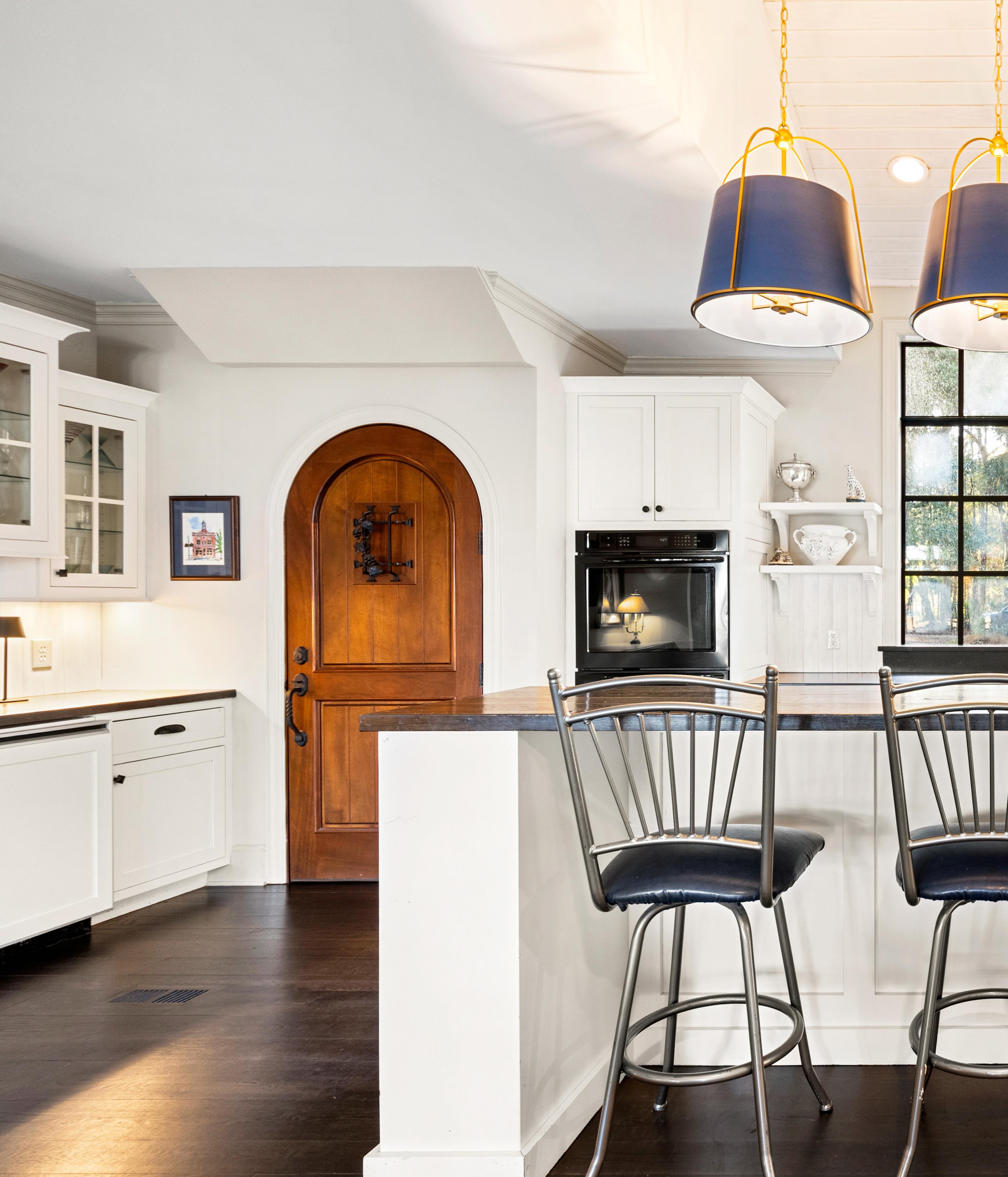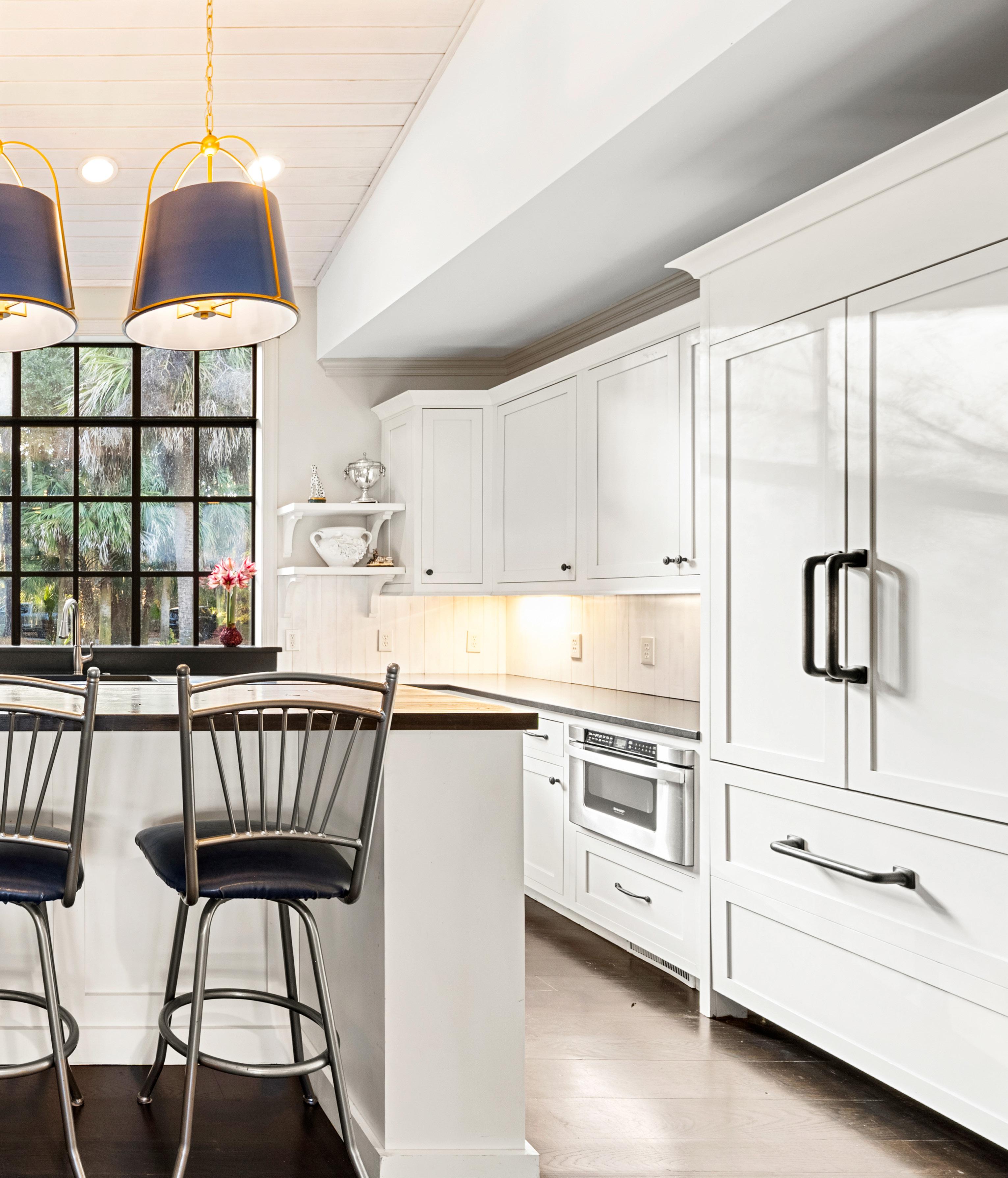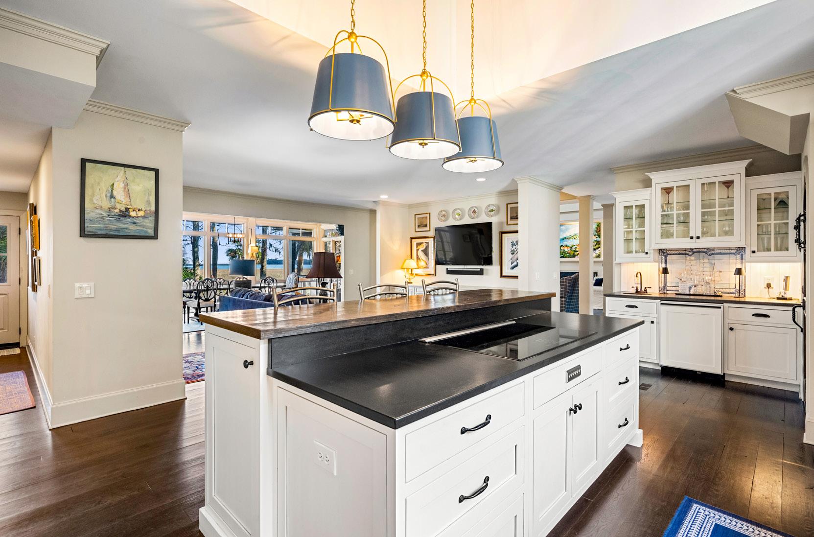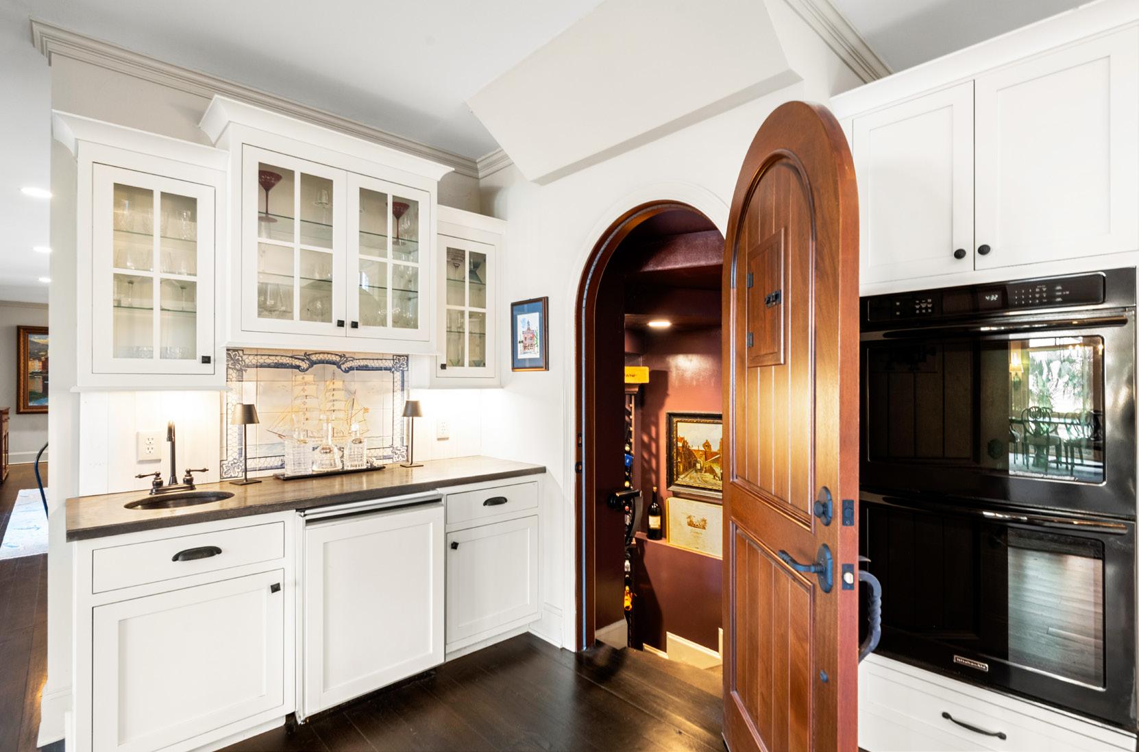 The heart of the home is a beautifully appointed kitchen where classic white cabinetry, rich wood accents, and generous islands create a space that is both elegant and highly functional. Oversized windows flood the room with natural light, offering tranquil views that make everyday moments - morning coffee or evening prep - feel quietly luxurious. A temperature-controlled, 500-bottle wine cellar, located behind a beautiful arched door, provides a striking finishing touch, perfect for the collector who appreciates both form and function in true Lowcountry style.
