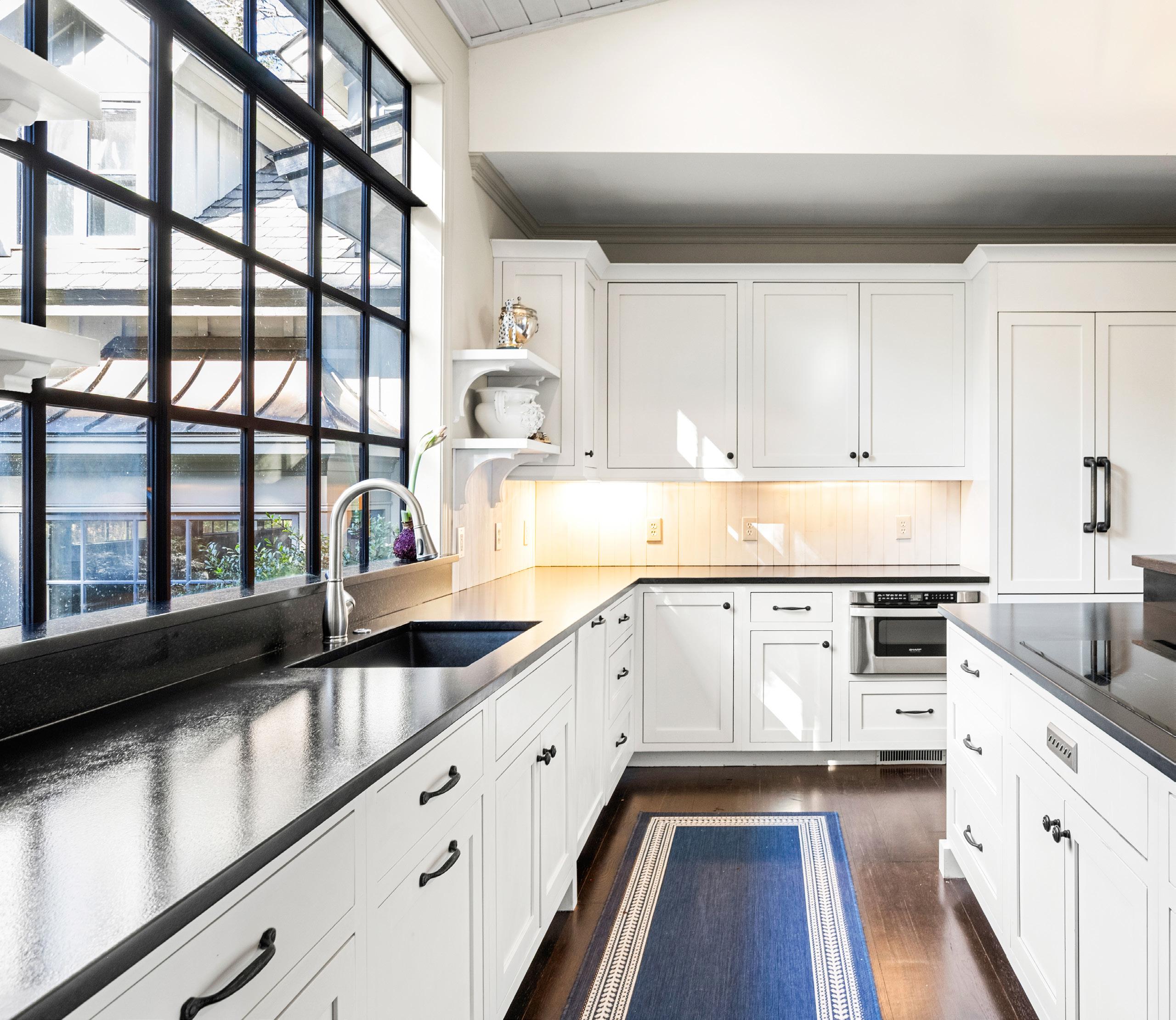 The guest suites are thoughtfully designed to offer comfort, privacy, and a relaxed coastal elegance, each filled with natural light and charming architectural details. Soft palettes, generous layouts, and serene views create welcoming retreats ideal for extended stays. An adjoining kitchenette adds both convenience and charm, complete with custom cabinetry and refined finishes that feel effortlessly at home. Together, these spaces provide guests with a sense of independence while maintaining the warmth and sophistication of the main residence.