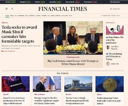 Recognized internationally for its authority, integrity, and accuracy, the Financial Times (FT) audience is composed of influential business executives, high-net-worth individuals. It’s global readership spans 140 countries and reaches a audience of highly educated, white-collar professionals and entrepreneurs. ft.com