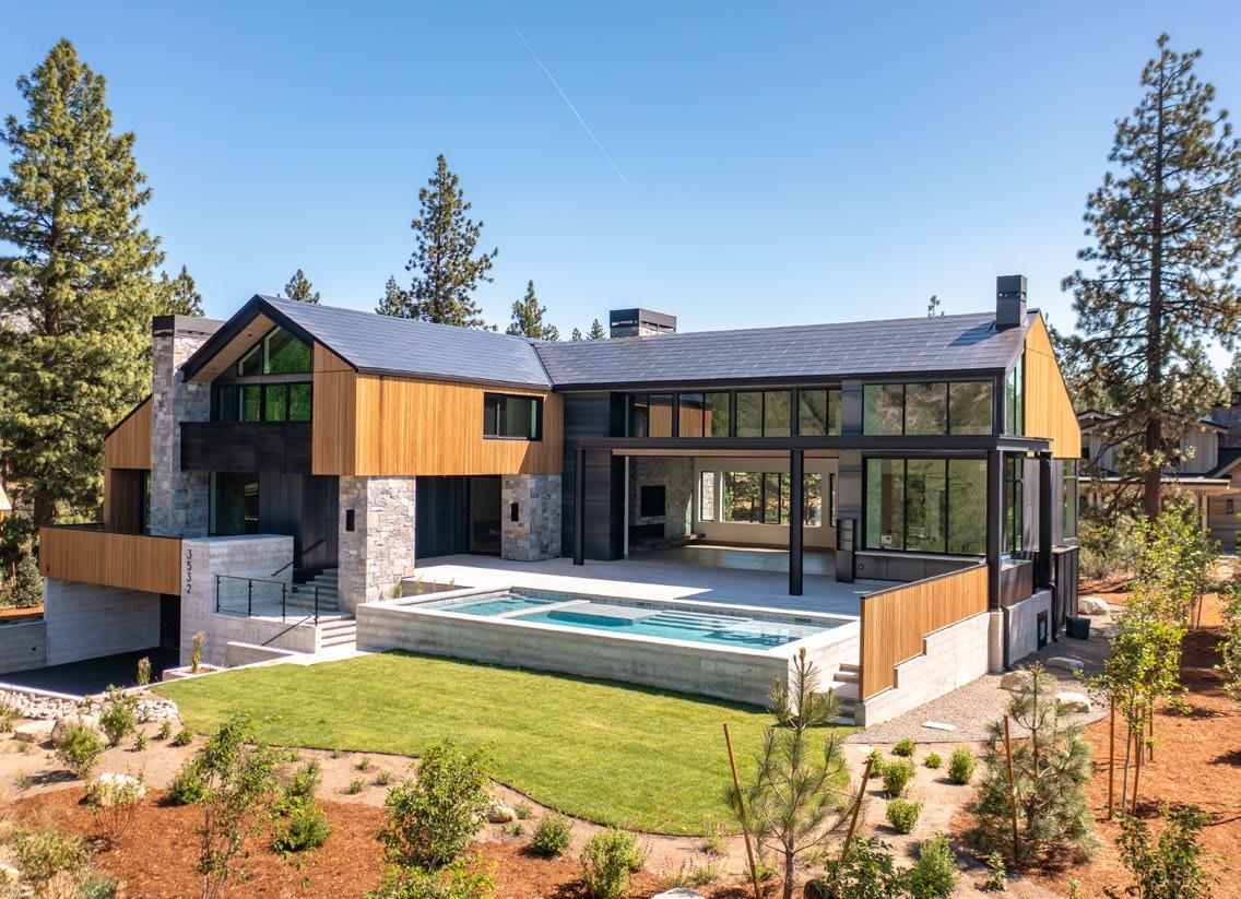Modern mountain estate in Clear Creek Tahoe with golf course views, spa amenities, and private serenity.