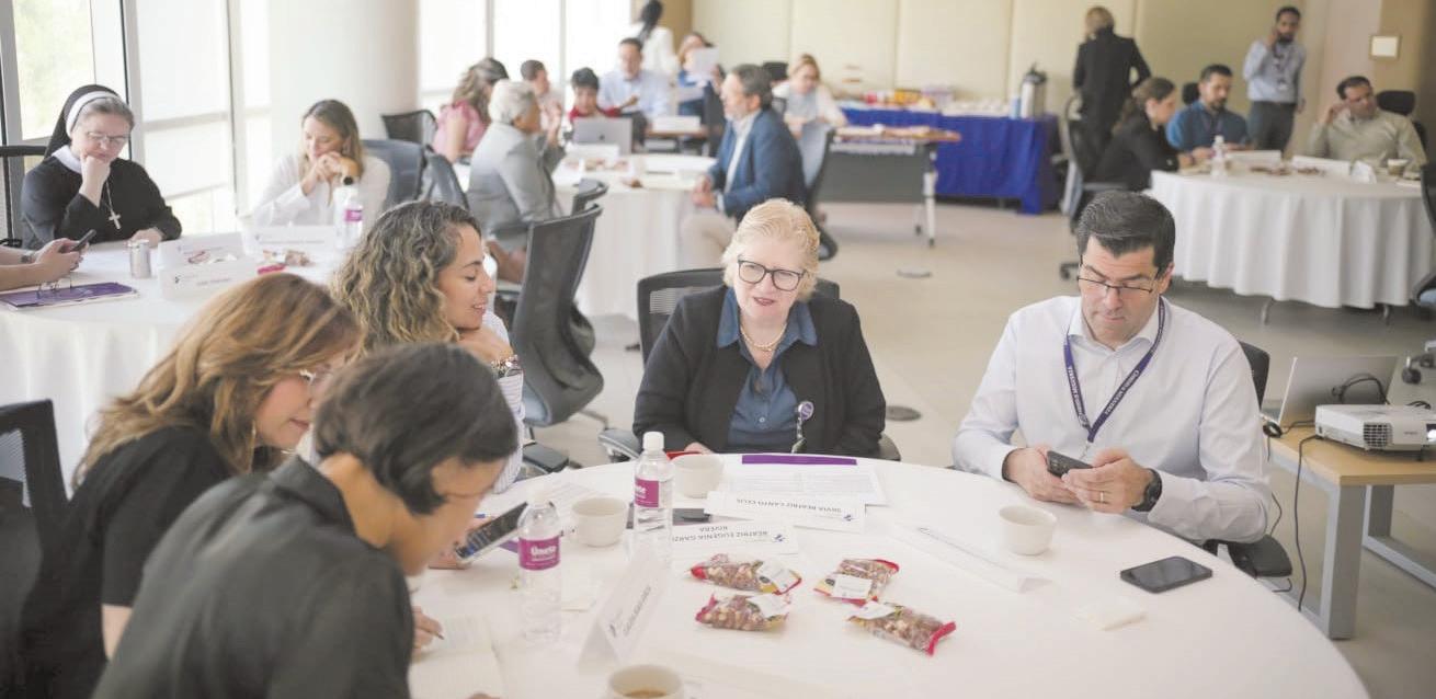 Executives from CHRISTUS Health’s international ministries take part in a Ministry Leadership Formation session at Hospital Sur in Monterrey, Mexico. During this table discussion, they talked through a case study on caring for the poor and vulnerable and how that relates to CHRISTUS Health’s commitments.