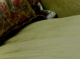 hangs below. The Bluebell love seat in green velvet is from Sofa.com and the striped chair is an antique which Anna restored and reupholstered.