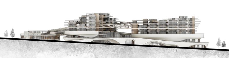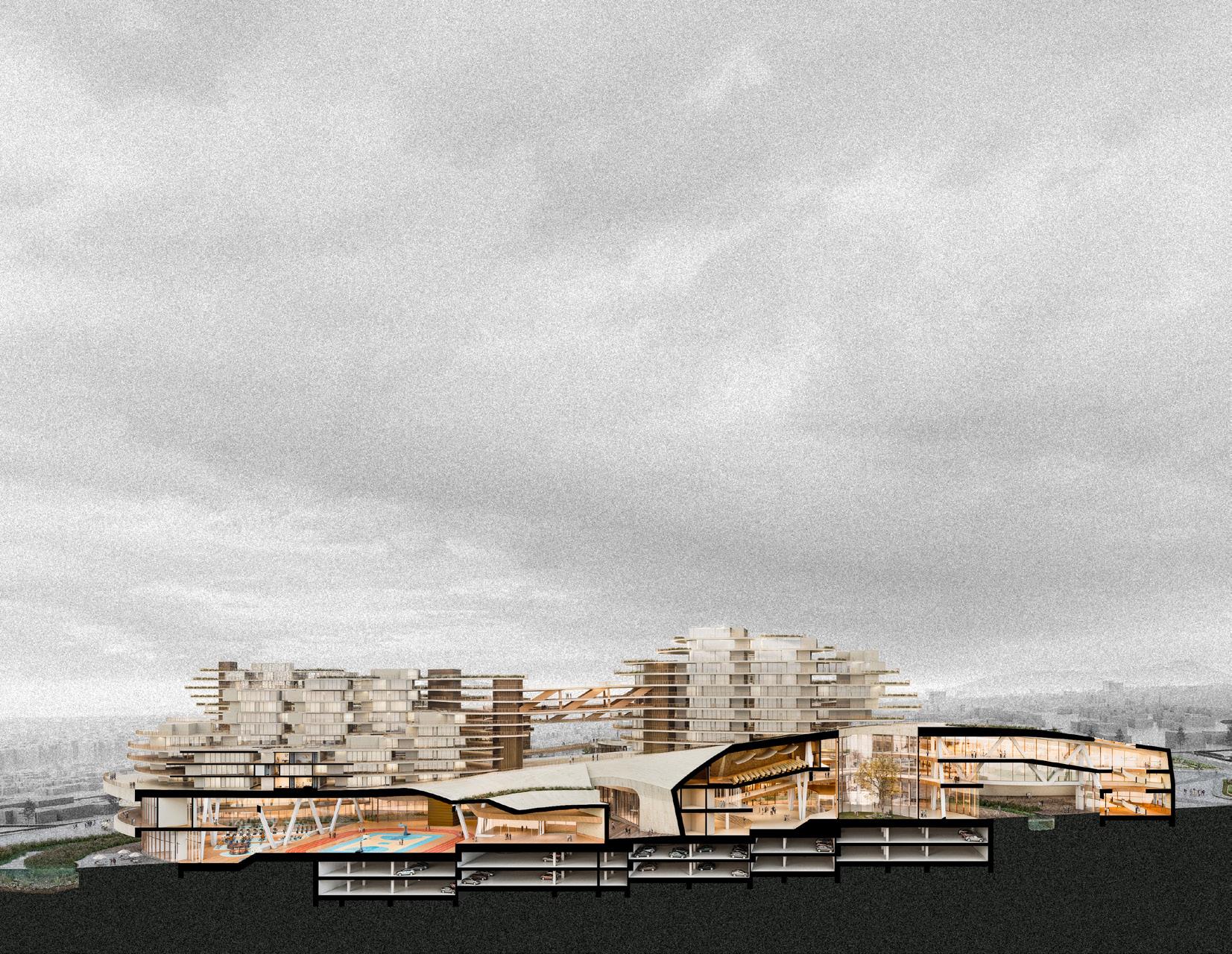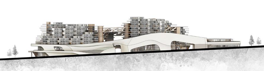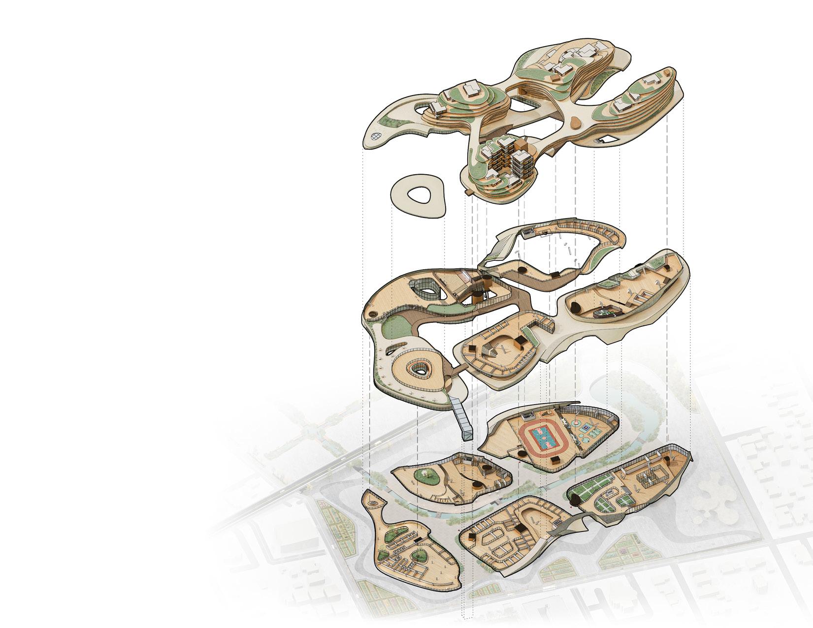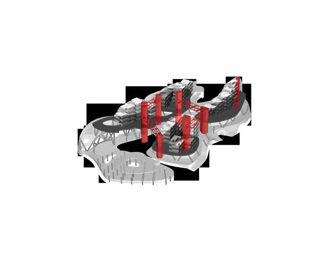 Cluster-based architectural strategy; massing and overall form development; Rhino modeling; physical model fabrication; and selected diagrams.