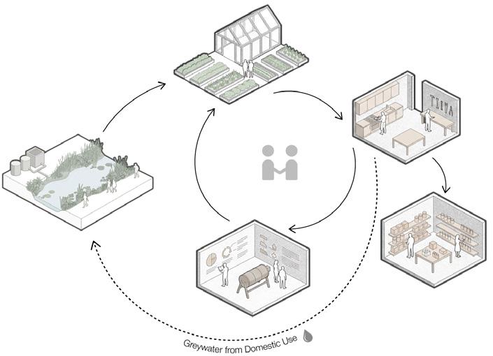 The loop is designed not only as a system of production and reuse, but also as a social framework that fosters intergenerational exchange through shared growing, making, learning, and engagement with the landscape.