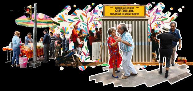 Public life extends naturally into the street, where markets, street vendors, and everyday activities shape a vibrant public realm.