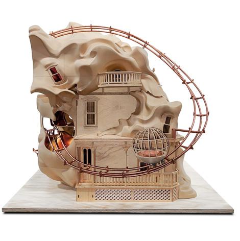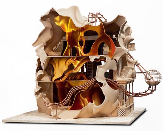 Developed through ZBrush modeling, 3D printing, and woodworking, the project creates a fantastical spatial world.