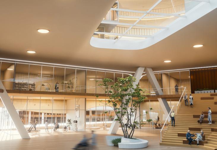 A shared space for daily exercise, recreation, active, receive light wellness support, and spend time in community. and community events that bring residents of different ages together.