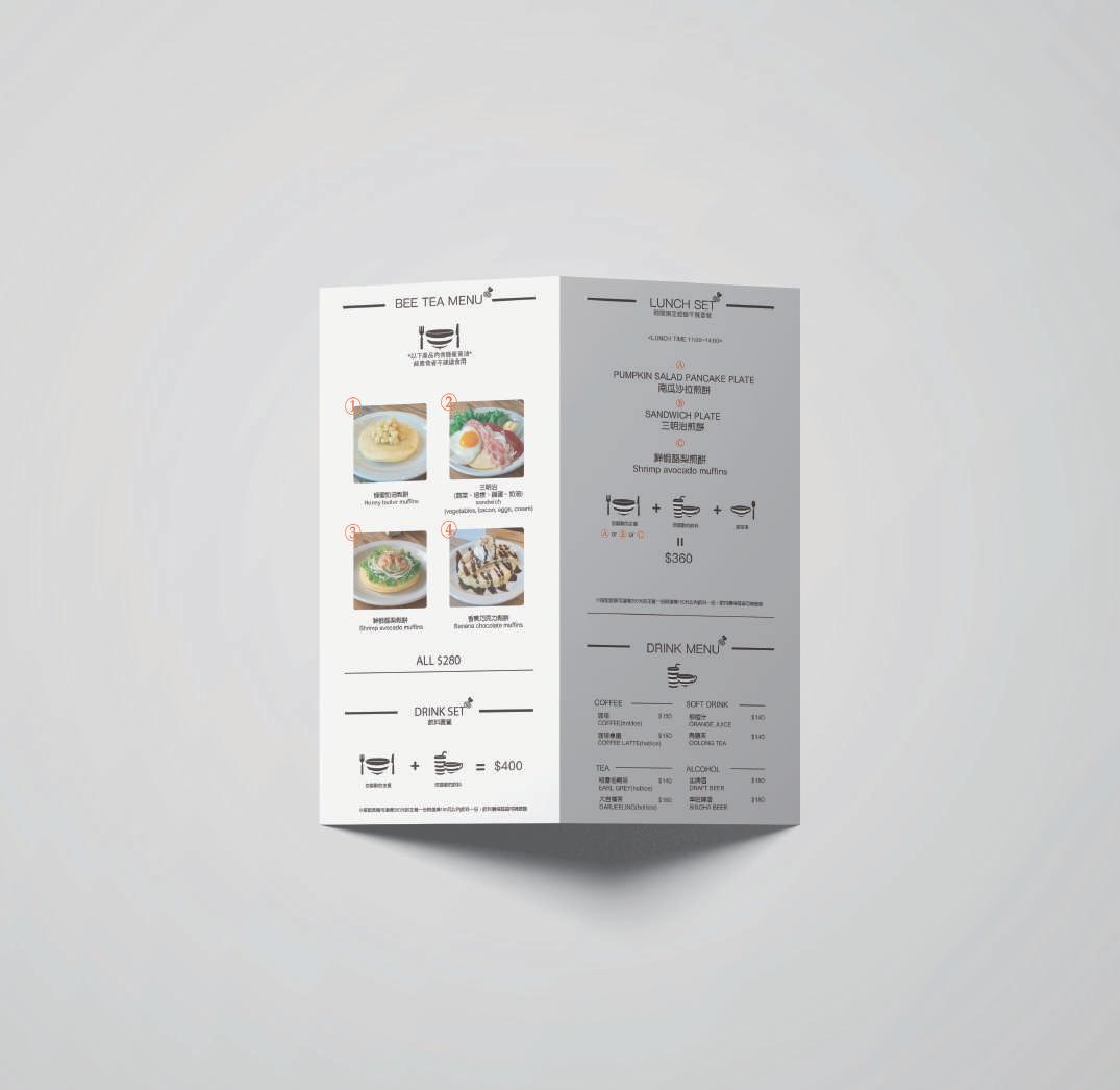 BEE TEA 對折菜單