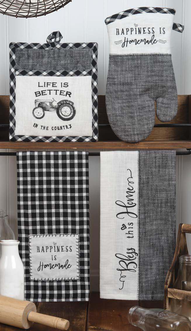 purpose terry towels flat weave face, terry cloth back 18 in x 28 in applique tea towels 100% cotton 5.5 in x 7.5 in grabber mitts face: 100% cotton lining: 63% polyester 37% cotton