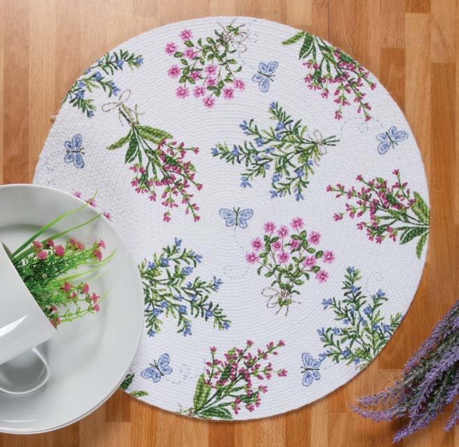 Flower MARKET R7572 Pocket Mitt $3.50 min 6 A. POCKET MITT & GRABBER MITT R7575 Grabber Mitt $4.00 min 3 R7571 Hostess Apron $12.00 min 1 B. HOSTESS APRON R7569 Drying Mat $4.50 min 3 C. DRYING MAT R7574 Braided Placemat $3.50 min 12 D. BRAIDED PLACEMAT A. B. C. D. POCKET MITT GRABBER MITT Air dry dishes & stemware 2