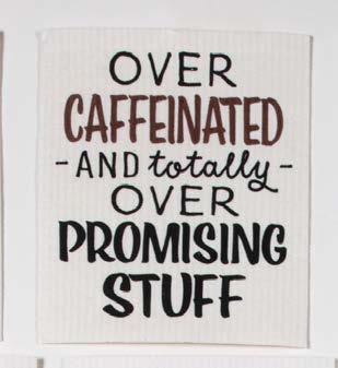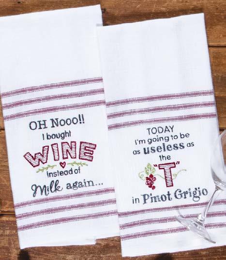 12 R7825 Oh No Wine $3.75 min 3 R7823 Bad Decisions $3.75 min 3 R7822 Liquor Cart $3.75 min 3 R7826 Coffee Kick $3.75 min 3 R7827 Pinot Grigio $3.75 min 3 R7824 Positive Drinking $3.75 min 3 EMBROIDERED TEA TOWELS - 16 in x 28 in, 100% cotton exclusive of decoration BEVERAGE BANTER 2PK SWEDISH FUN CLOTHS - 6.5 in x 8 in, 70% cellulose/30% cotton © Robin Roderick R7613 Combo 2 $5.00 min 3 sets R7614 Combo 3 $5.00 min 3 sets R7612 Combo 1 $5.00 min 3 sets
