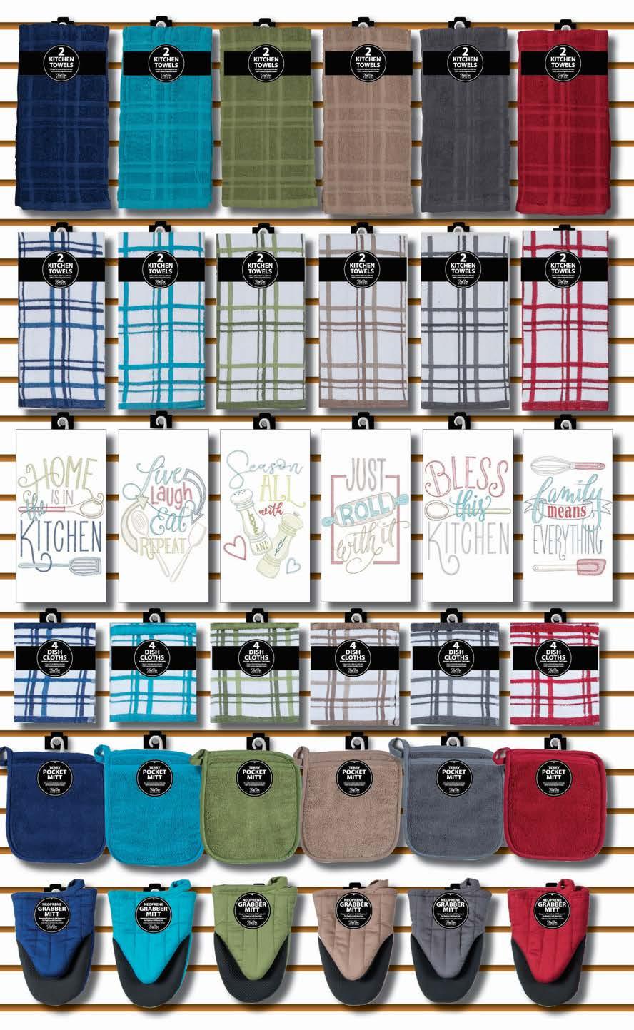 2023 EVERYDAY towels • mitts • aprons • tabletop www.KayDeeDesigns.com | Orders@KayDeeDesigns.com | (p) 800-537-3433 | (f) 800-272-0724 KITCHEN TEXTILE WHOLESALE CATALOG pg 150-153 2 PACK