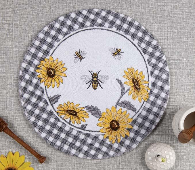 34 A. EMBR. POCKET MITT & GRABBER MITT 8 in x 9 in pocket mitt, 5.5 in x 7.5 in grabber D. BRAIDED PLACEMAT 14.5 in round C. EMBR. HOSTESS APRON 20 in x 30.5 in R5811 Embr. Hostess Apron $12.00 min 1 R5802 Pocket Mitt $3.50 min 6 R5815 Grabber Mitt $4.00 min 3 R5804 Placemat $3.50 min 12 Just BEES © Deb Strain A. C. D. POCKET MITT GRABBER MITT B. 2PK SWEDISH FUN CLOTHS 6.5 in x 8 in, 70% cellulose/30% cotton R7636 2PK Fun Sponge Cloths $5.00 min 3 sets