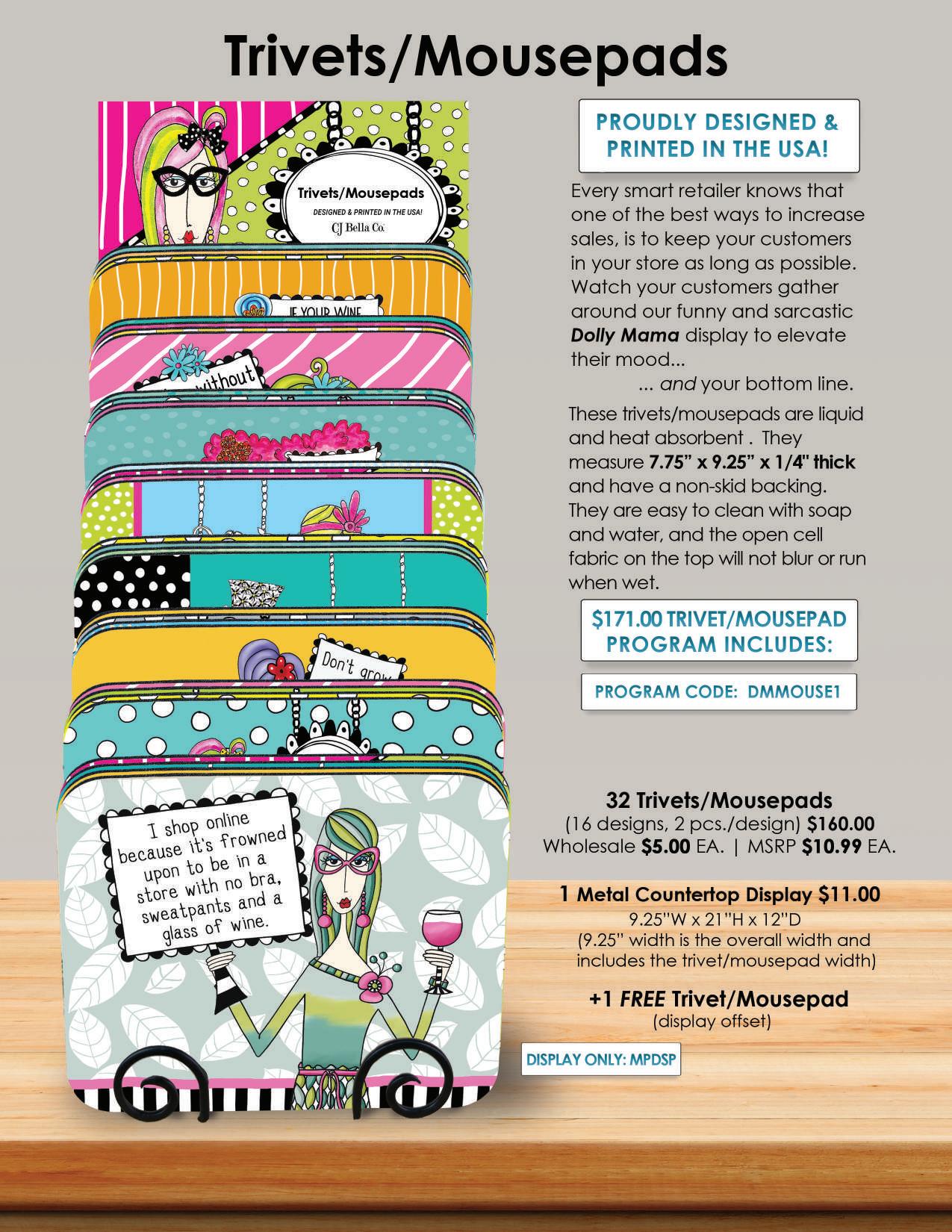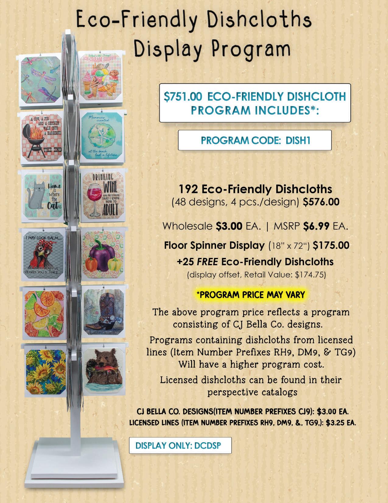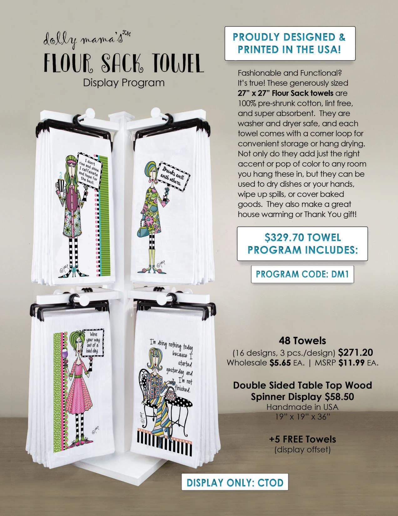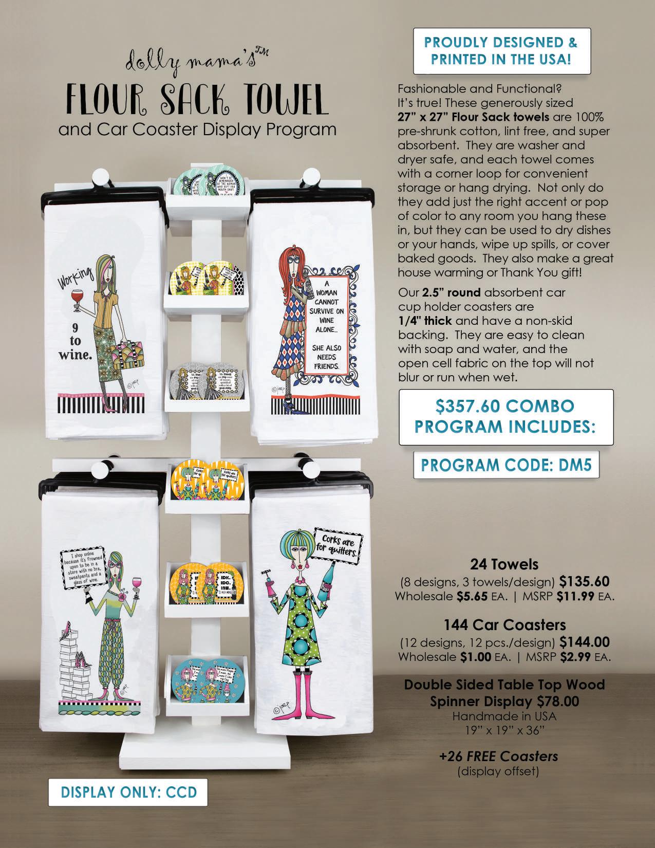 MIN: 4 | WHOLESALE $3.25 ea. MSRP $6.99 ea. Eco-Friendly Dishcloths Packaging Included as Shown PROUDLY MADE IN THE U.S.A. 7 37214 52270 6 7 37214 52274 4 7 37214 52271 3 7 37214 52275 1 7 37214 52269 0 7 37214 52273 7 7 37214 52268 3 7 37214 52272 0 DM9-160 DM9-186 DM9-161 DM9-193 DM9-158 DM9-185 DM9-157 DM9-172 Have you seen our Dolly Mama Christmas collection? (Flour Sack Towels, Eco-Friendly Dishcloths, Tabletop Coasters)