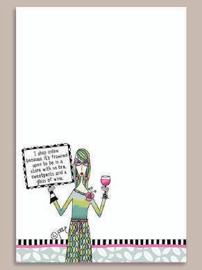 I shop online becuase it’s frowned upoon with no bra on, sweatpants, and a glass of wine.