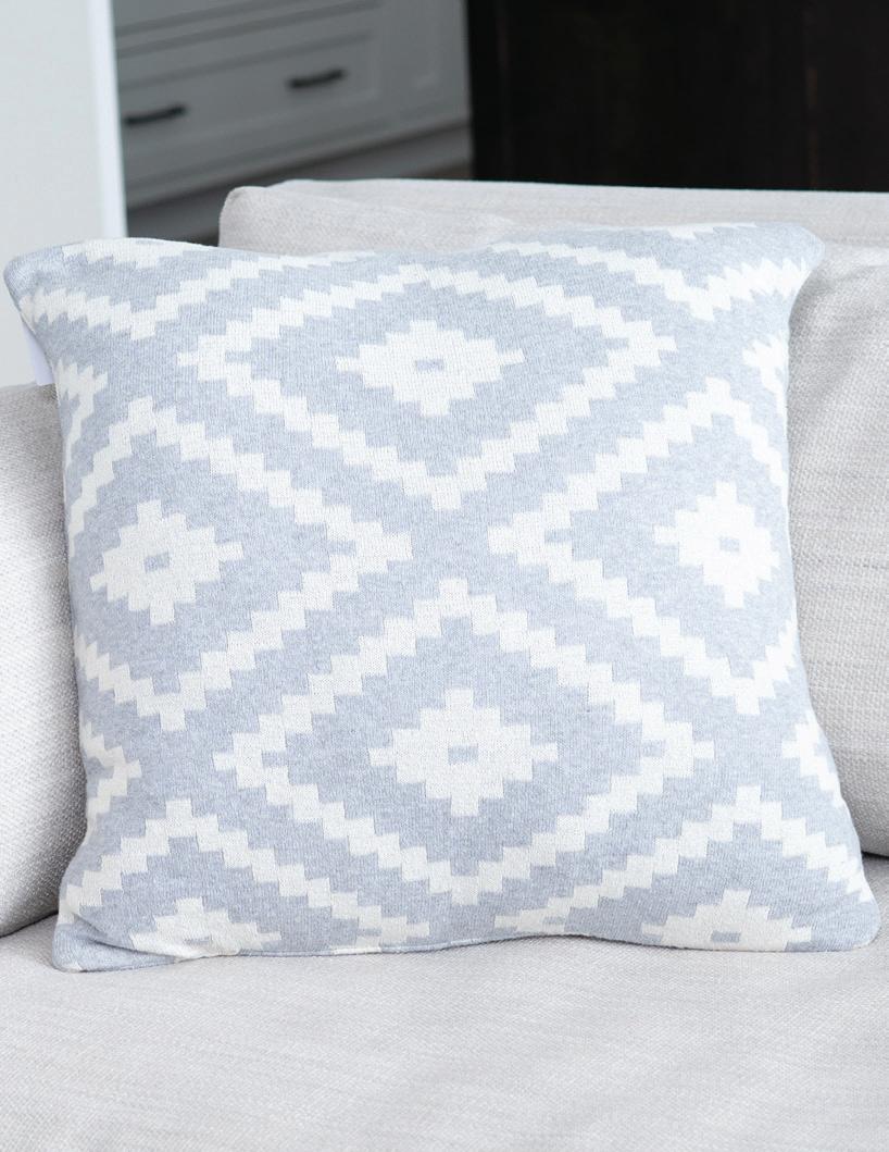 52% RECYCLED COTTON, 45% POLYESTER, 3% OTHER, LIGHT GRAY AZTEC - L: 18" X W: 18" $18.50 EACH - MIN 2