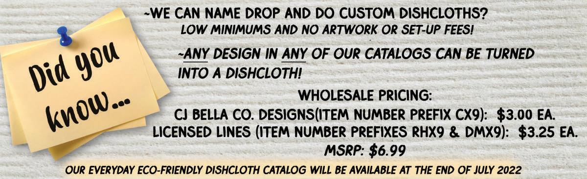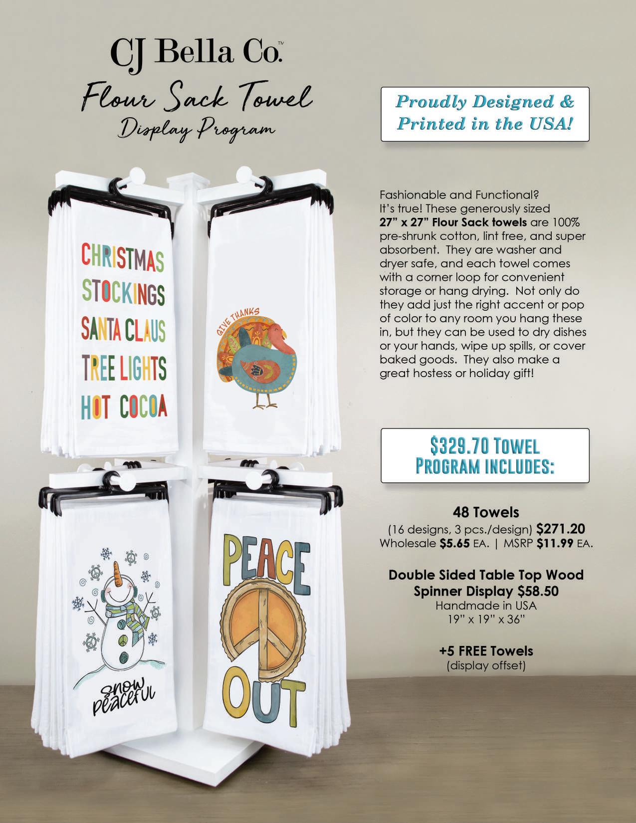 MIN: 3 | WHOLESALE $5.65 ea. MSRP $11.99 ea. FLOUR SACK TOWELS DESIGNED & PRINTED IN THE U.S.A.