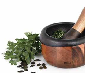 The handle of the pestle made from acacia wood feels comfortable in the hand