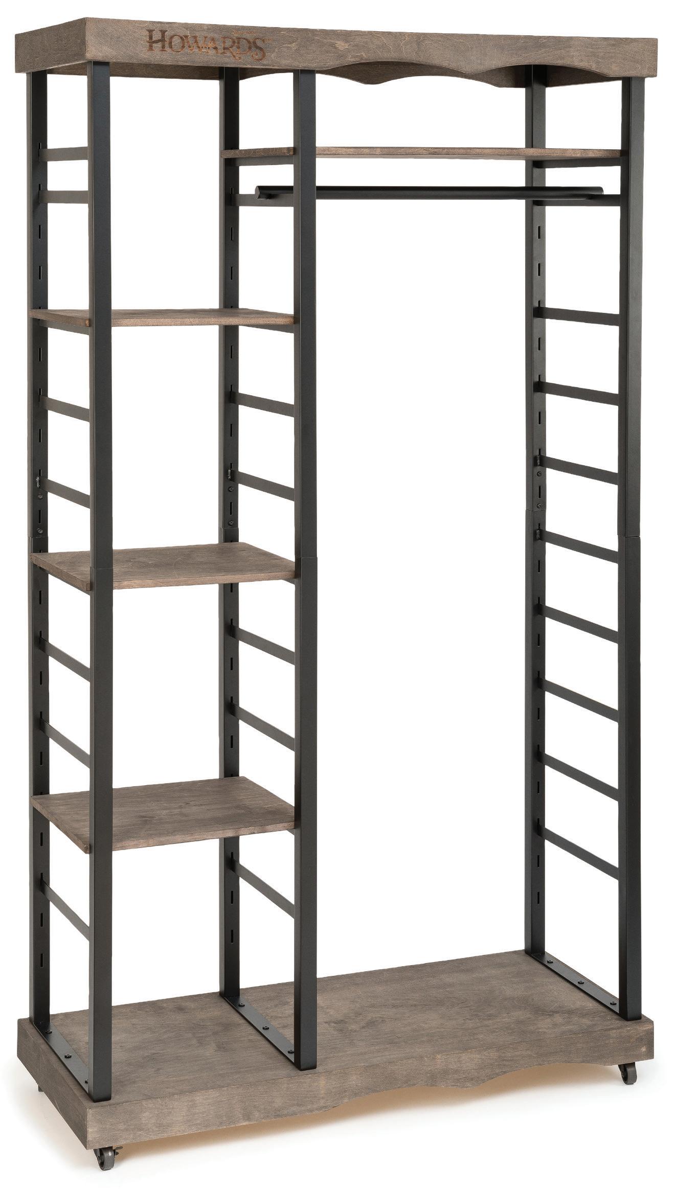 Includes: 3 small shelves, 1 large shelf, 1 metal apparel bar, 24 removable bars, 6 permanent bars, 20 2” hooks, 20 4” hooks, 2 bracelet bars