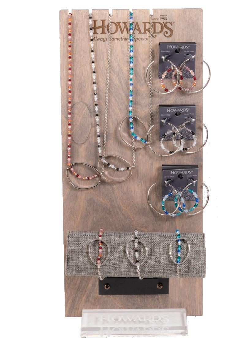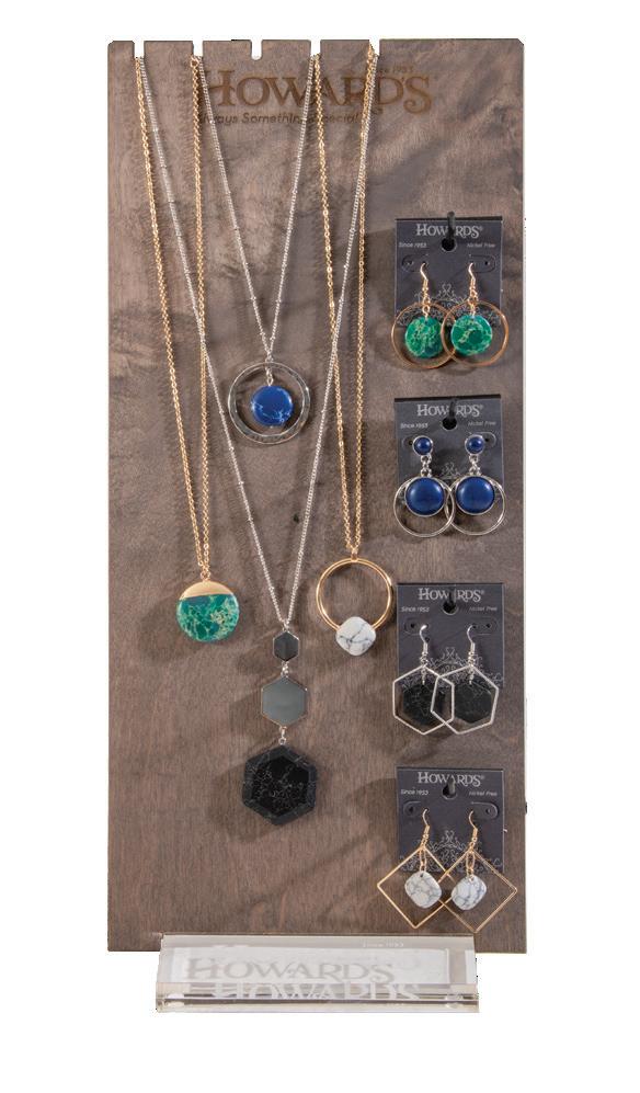 DISPLAYS 157 @SHOPHOWARDSINC #HAPPYATHOWARDS HOWARDSINC.COM | All jewelry is nickel free. Necklaces come with a 2” chain extender
